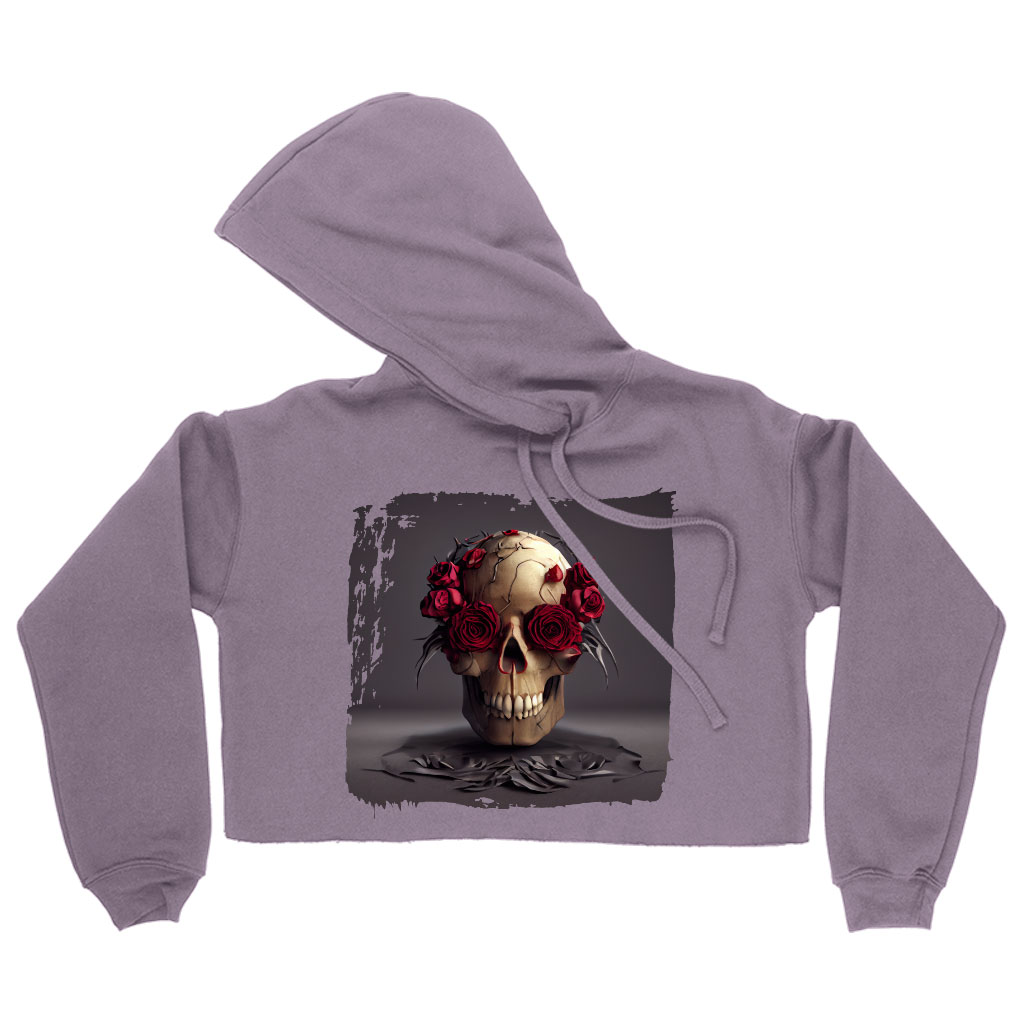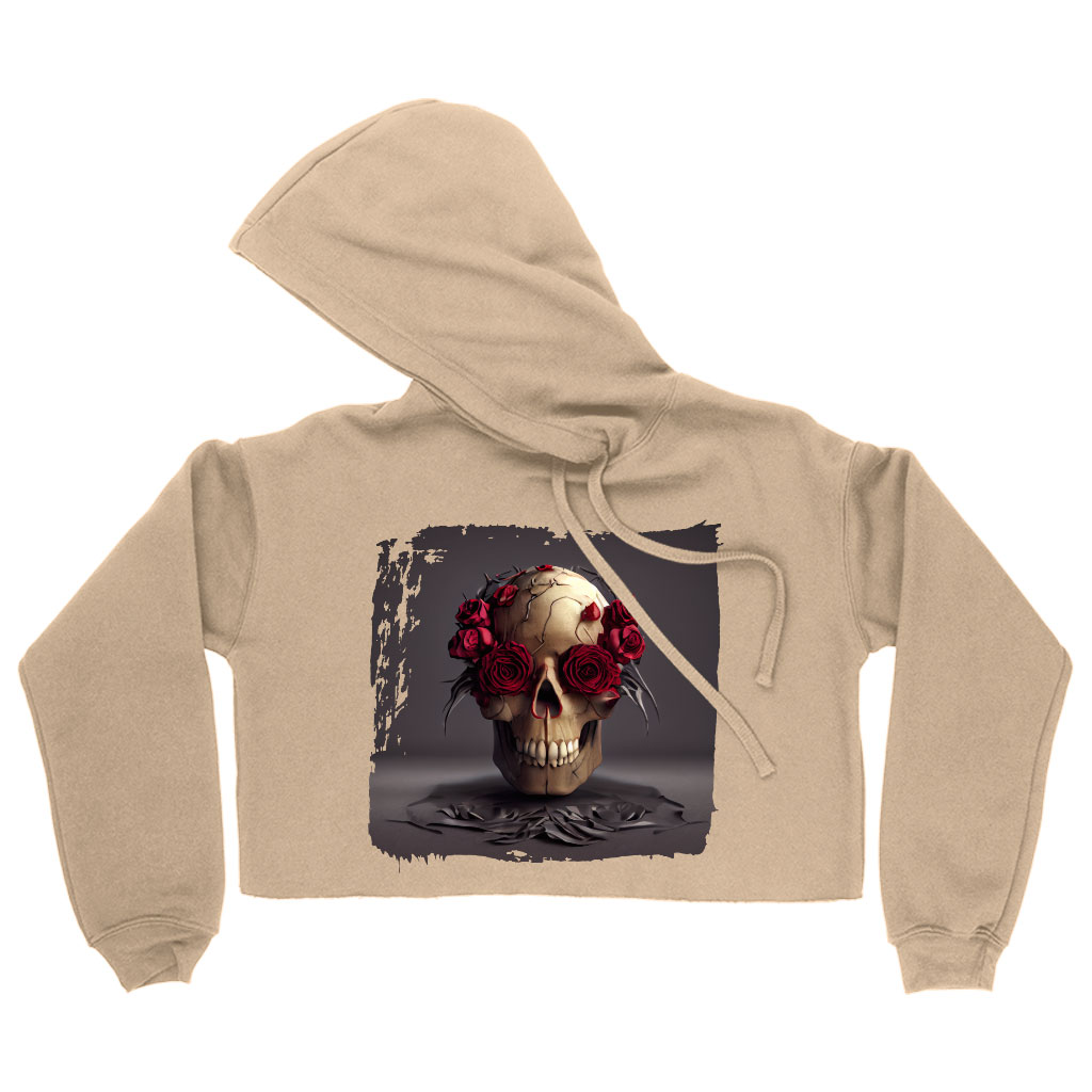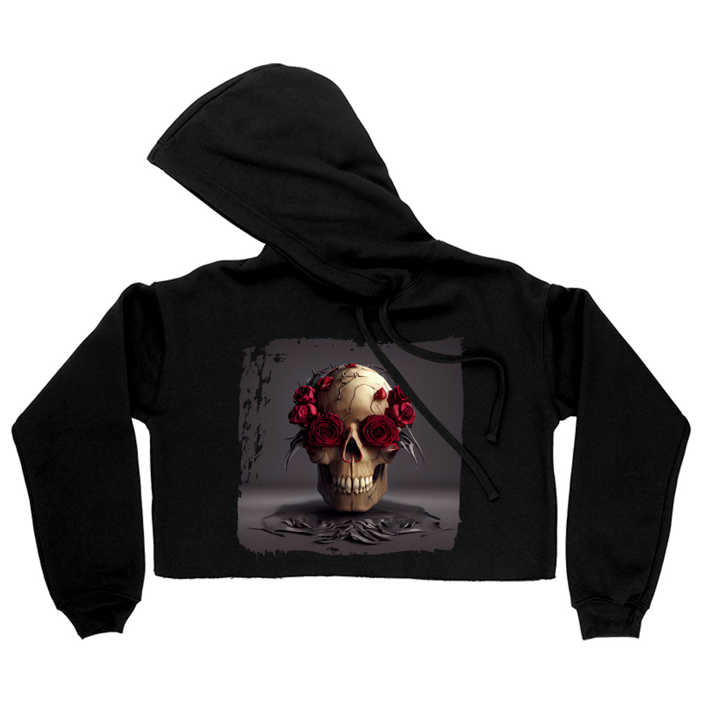 Cool Skull Graphic Women’s Cropped Hoodie – Art Cropped Hoodie – Roses Hooded Sweatshirt
