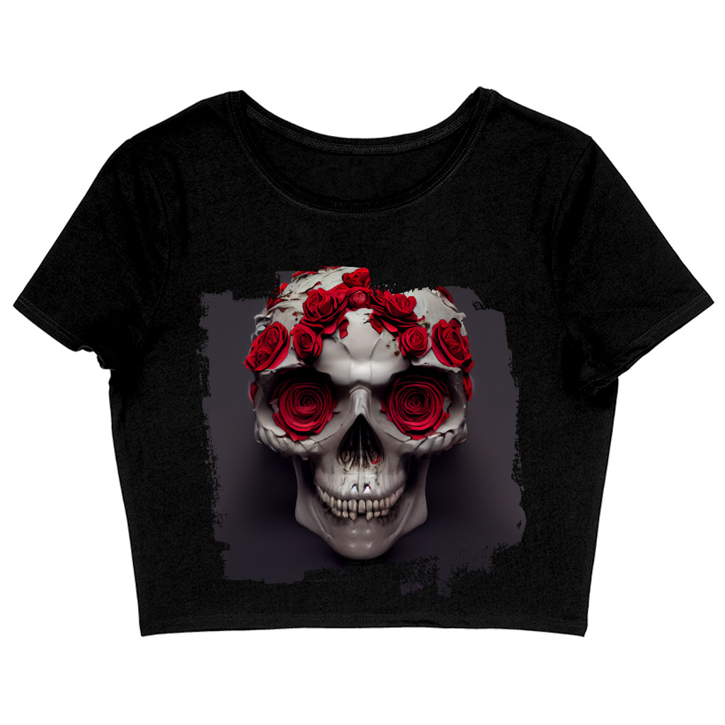 Cool Skull Women’s Cropped T-Shirt – Floral Crop Top – Graphic Crop Tee Shirt