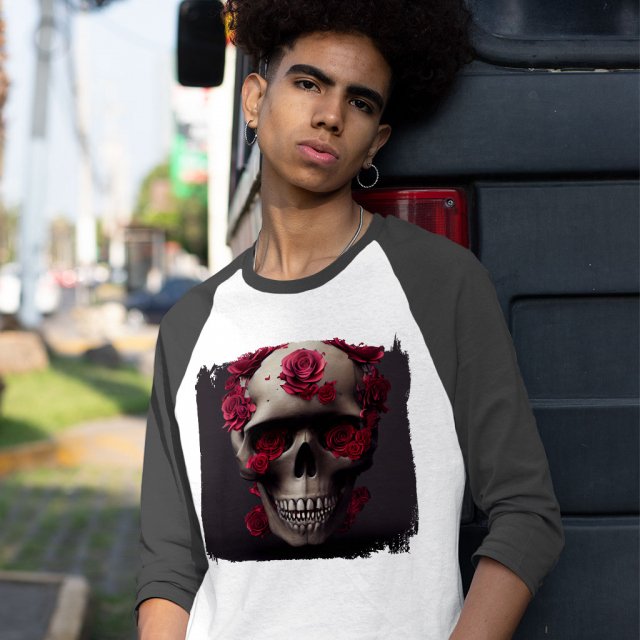 features raglan 3/4 sleeves and a modern fit that is perfect for a day