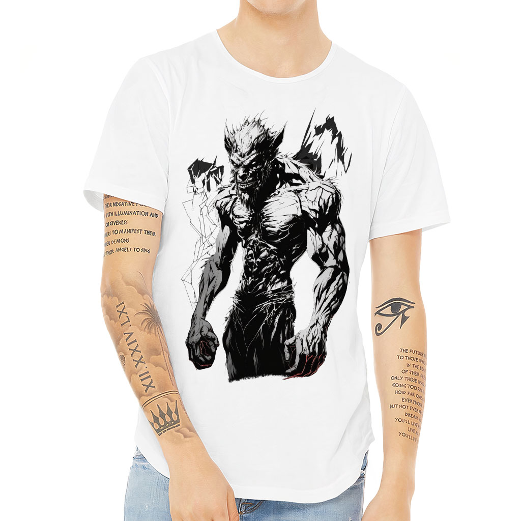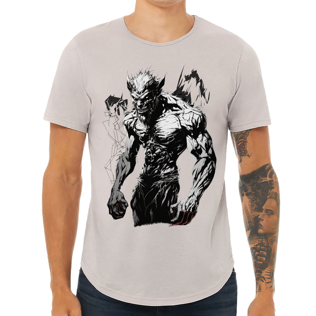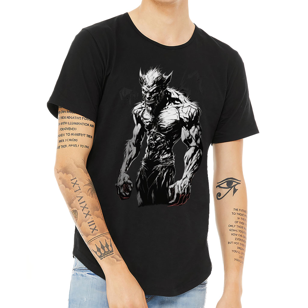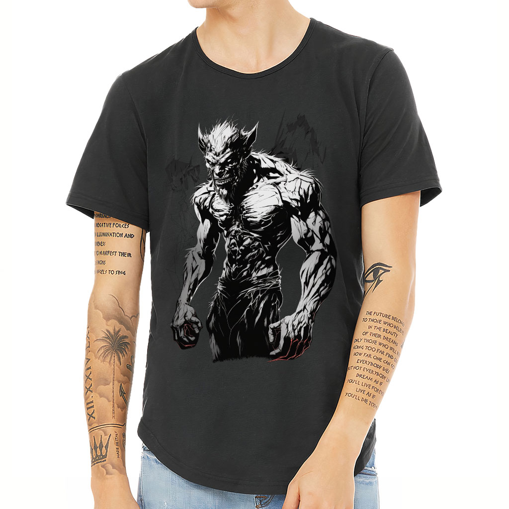 Creepy Curved Hem T-Shirt – Werewolf Gifts – Cool Gifts for Men