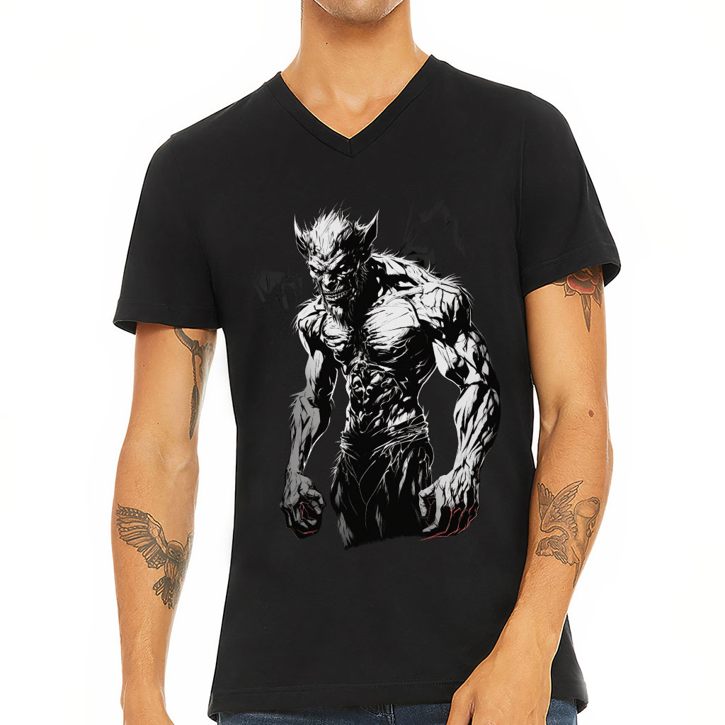 Creepy V-Neck T-Shirt – Cool Gifts for Men- Werewolf Gifts