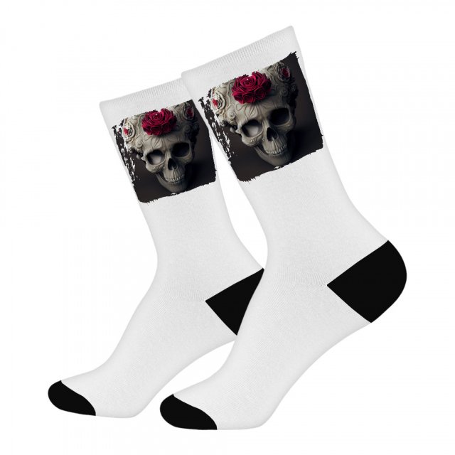 Skull and Roses Socks – Print Novelty Socks – Flower Crew Socks