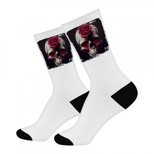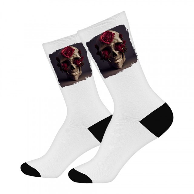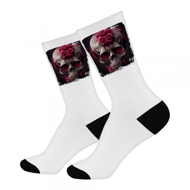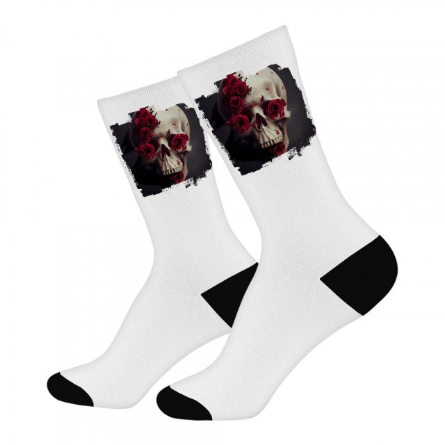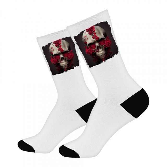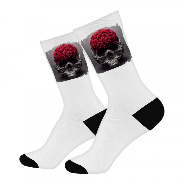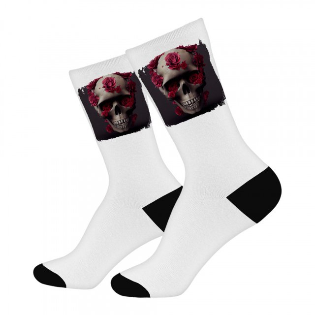 Cool Skull Graphic Socks – Art Novelty Socks – Roses Crew Socks
