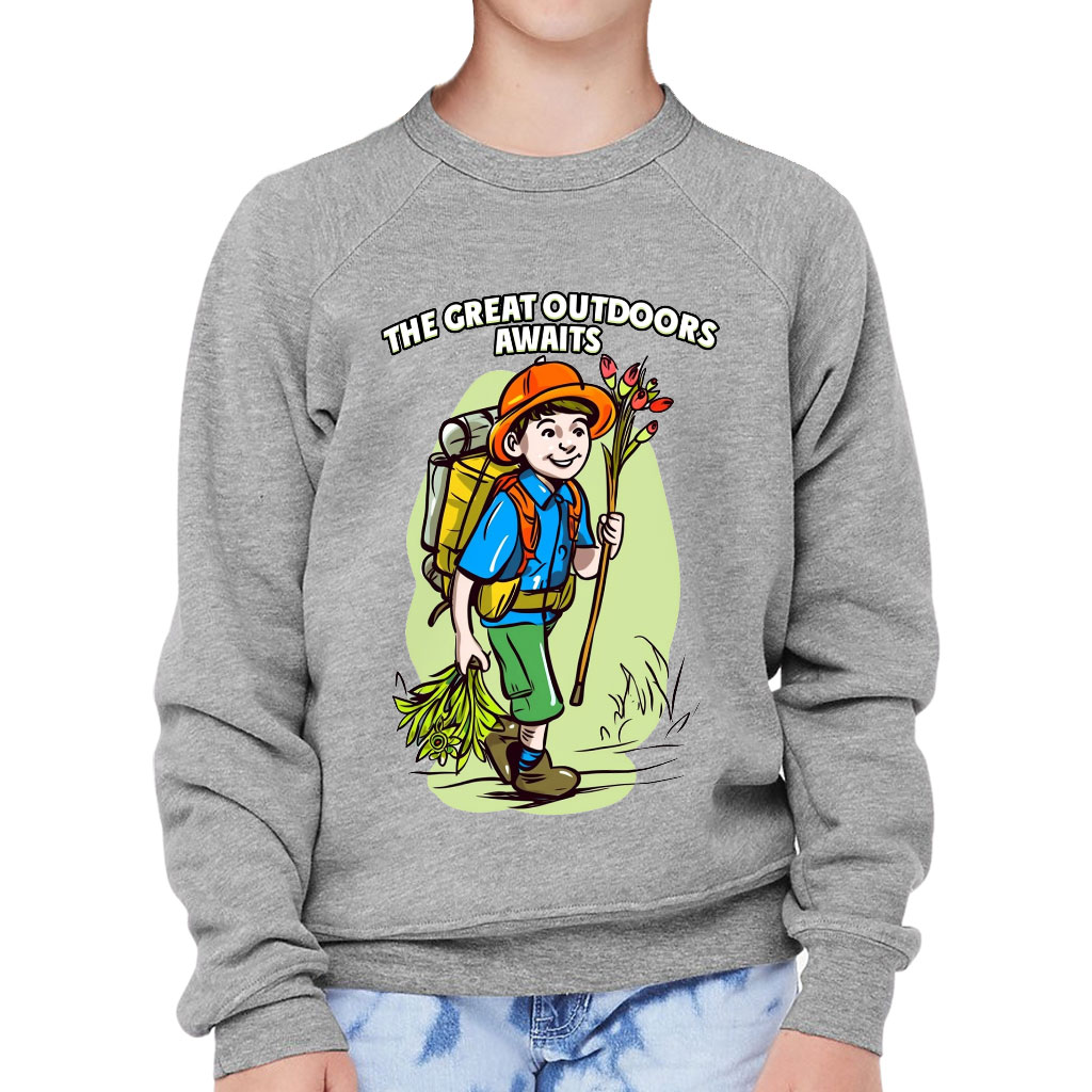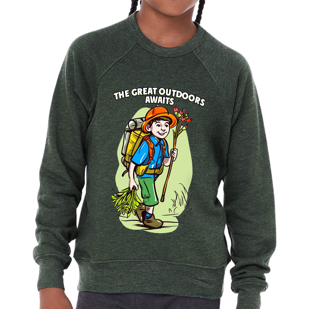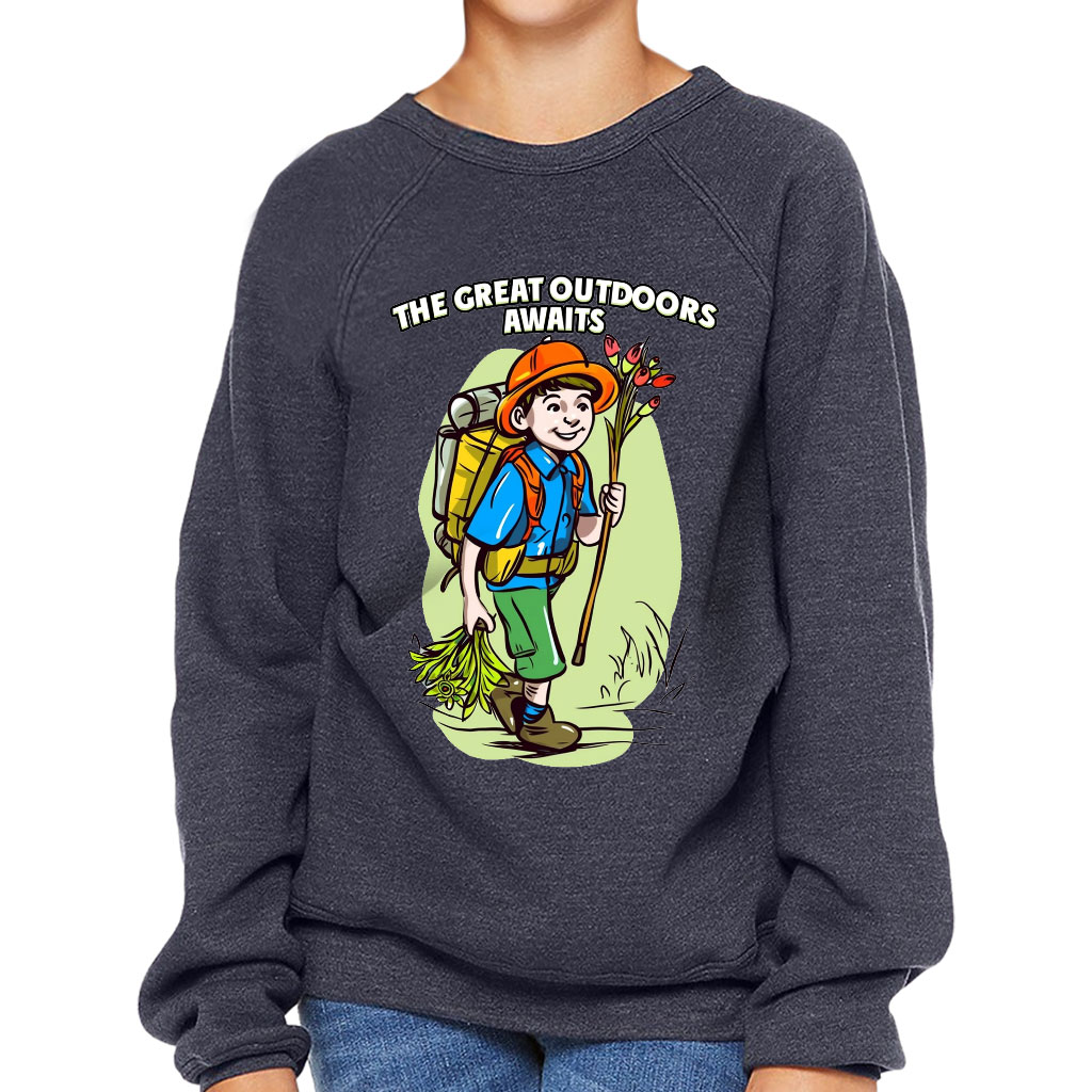 This remarkably soft pullover crewneck sweatshirt lends itself to daily wear and year-round layering. Cute Adventure Kids’ Raglan Sweatshirt features ribbed cuffs and a waistband, a crew neck, and a fashion-forward fleece fabrication.