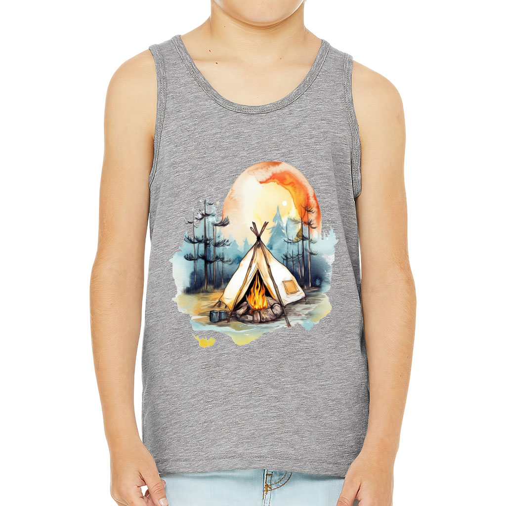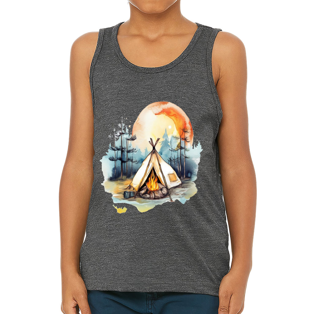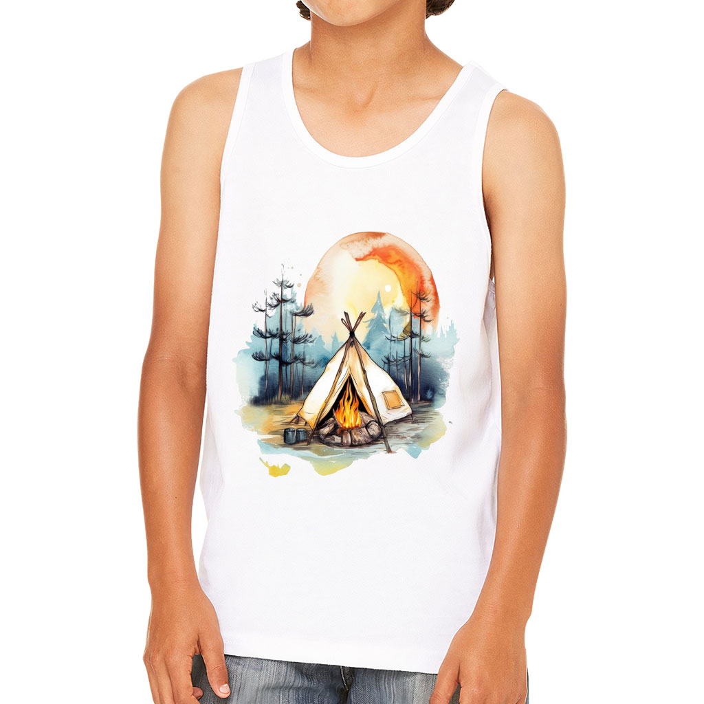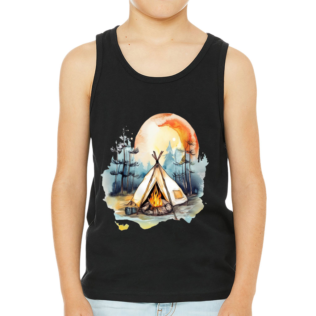 Cute Camping Kids’ Jersey Tank – Watercolor Sleeveless T-Shirt – Cool Kids’ Tank Top
