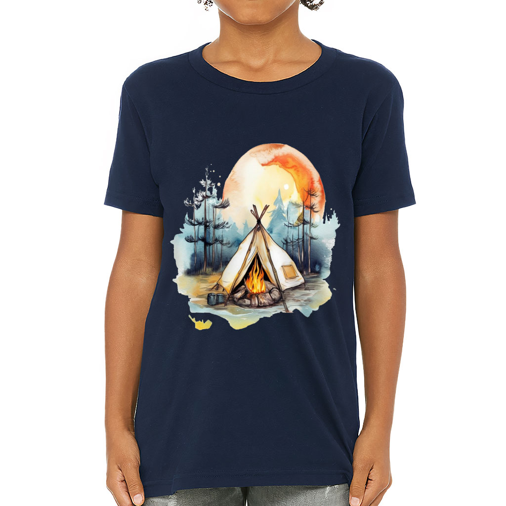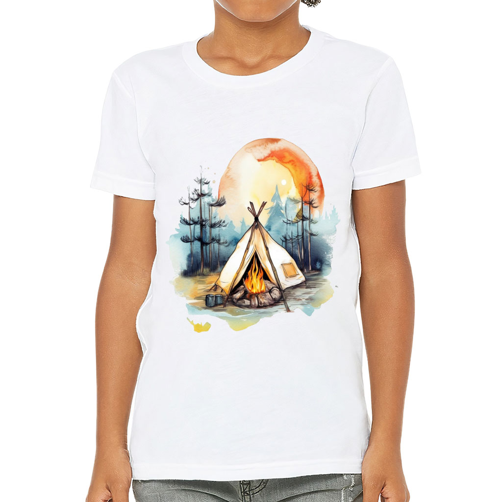 Cute Camping Kids’ T-Shirt – Watercolor T-Shirt – Cool Tee Shirt for Kids