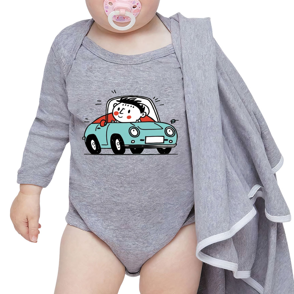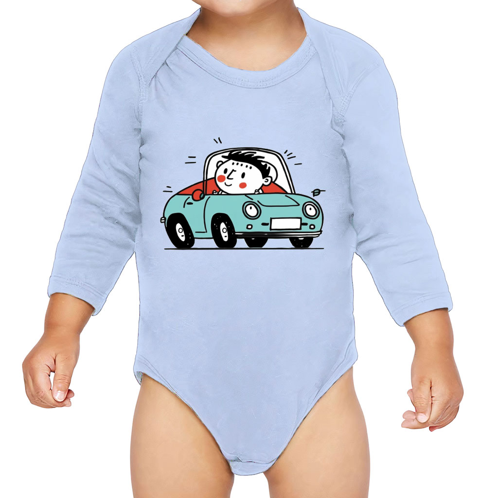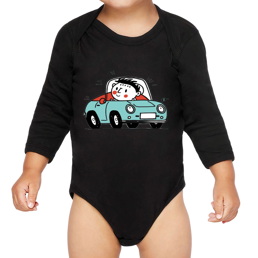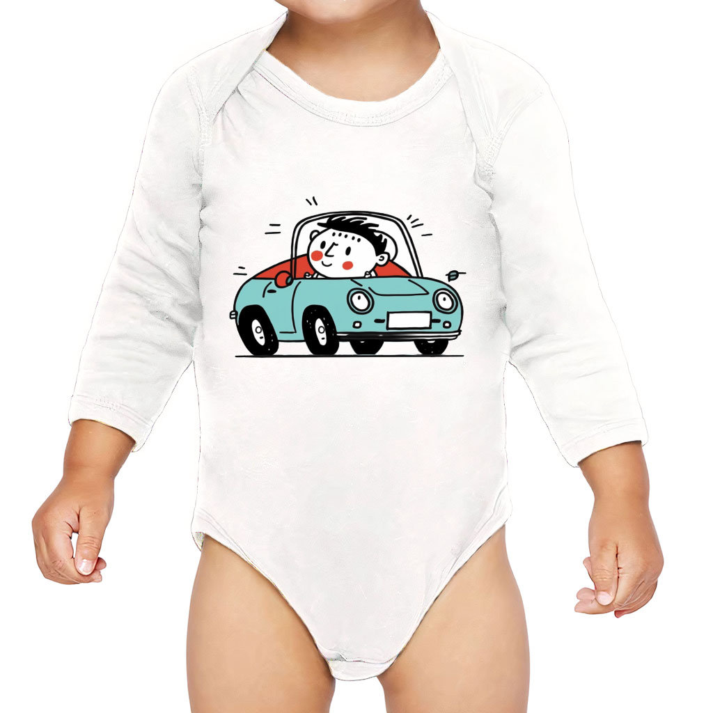 Cute Car Baby Long Sleeve One-Piece – Art Baby Long Sleeve Bodysuit – Cartoon Baby One-Piece
