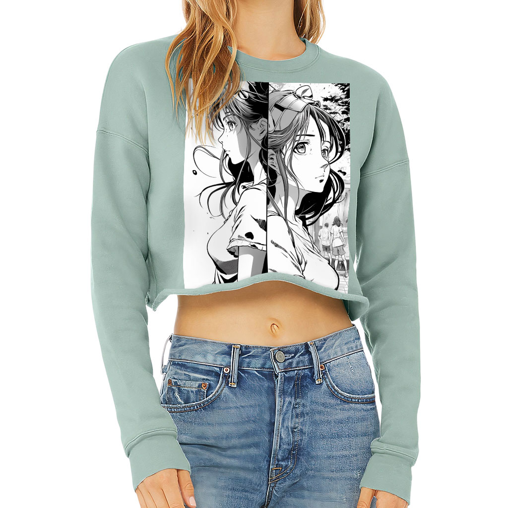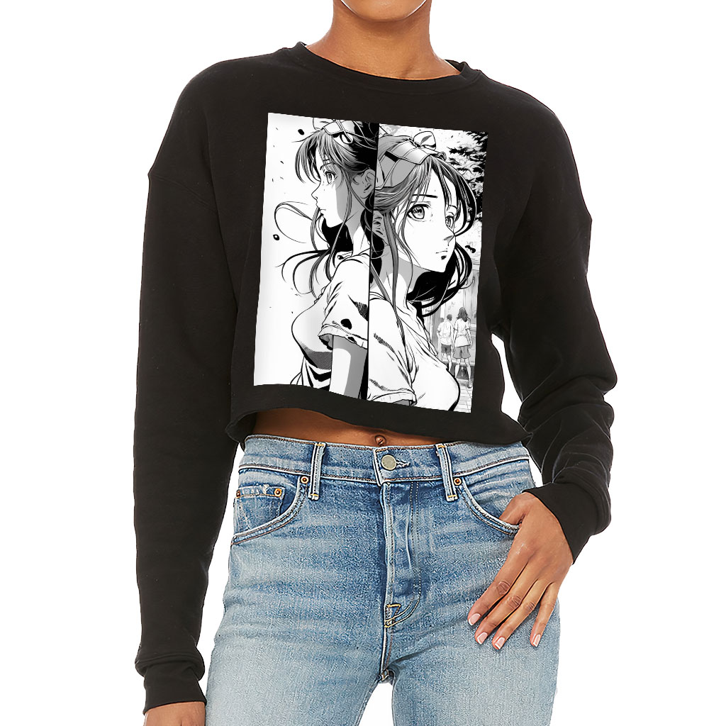 Cute Girl Cropped Sweatshirt – Illustration Women’s Sweatshirt – Art Crop Crew Sweatshirt