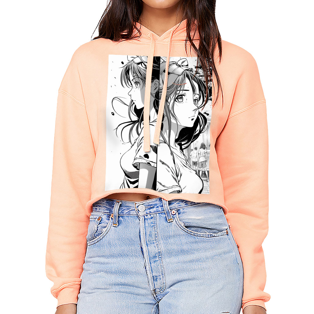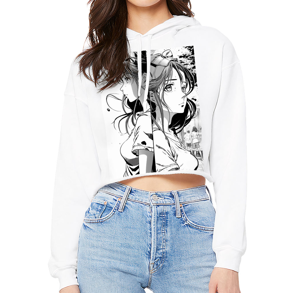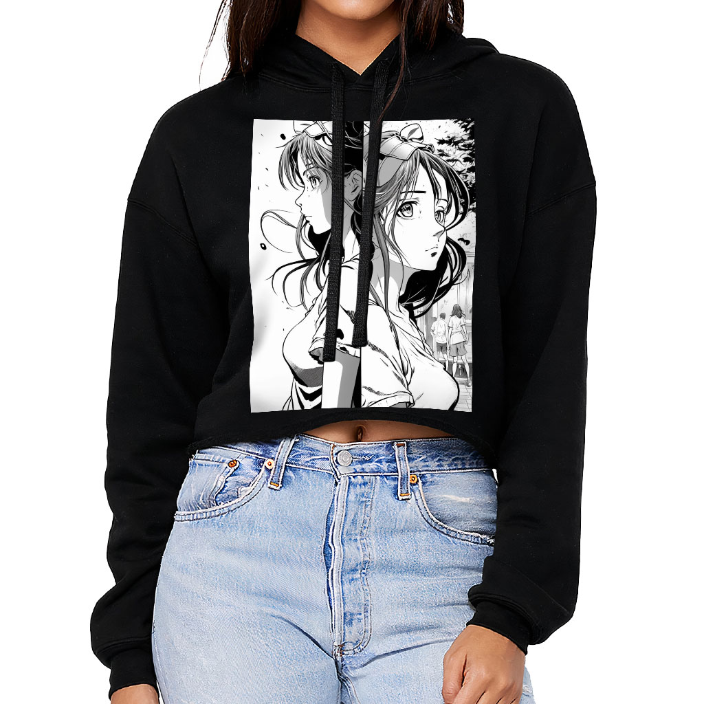 Cute Girl Women’s Cropped Hoodie – Illustration Cropped Hoodie – Art Hooded Sweatshirt