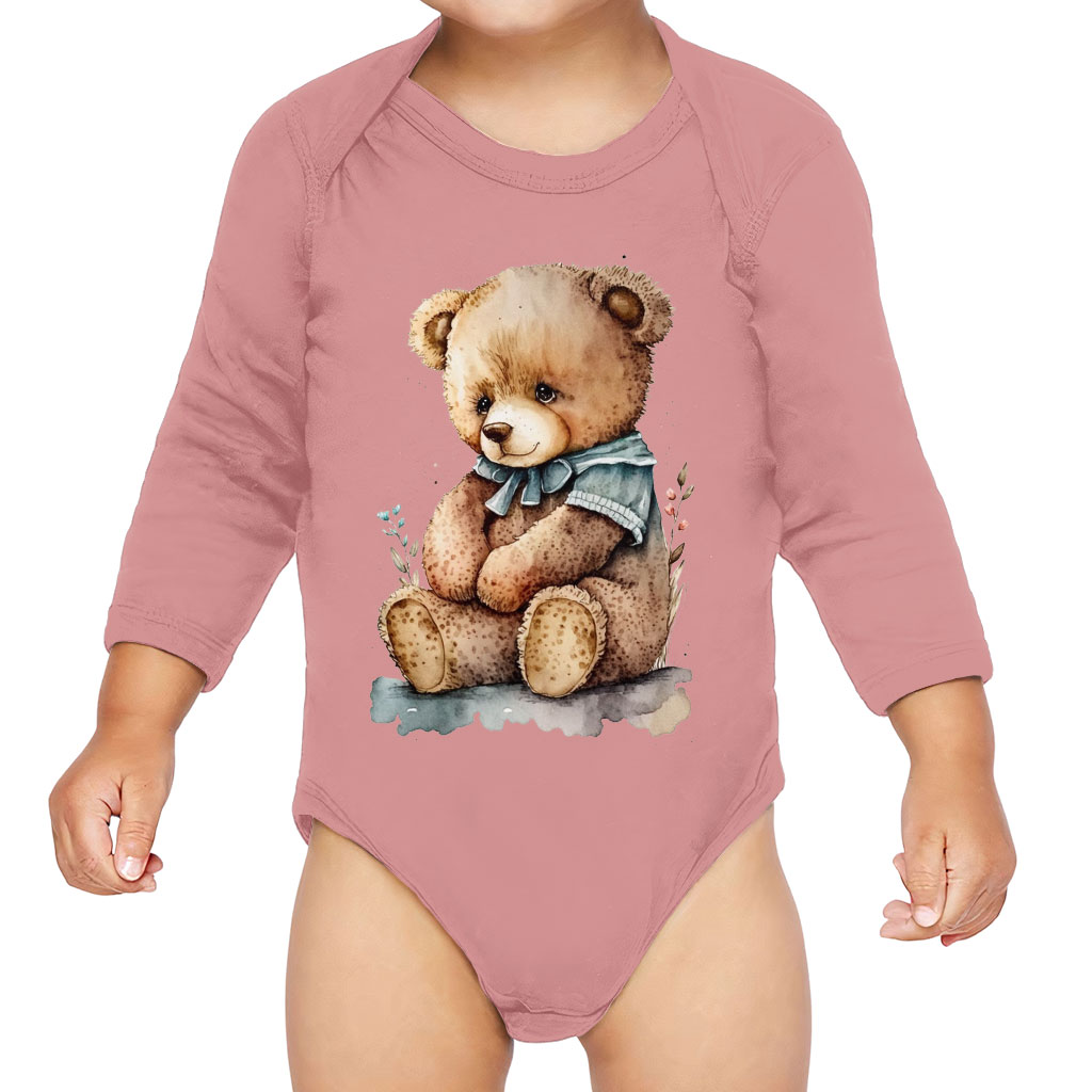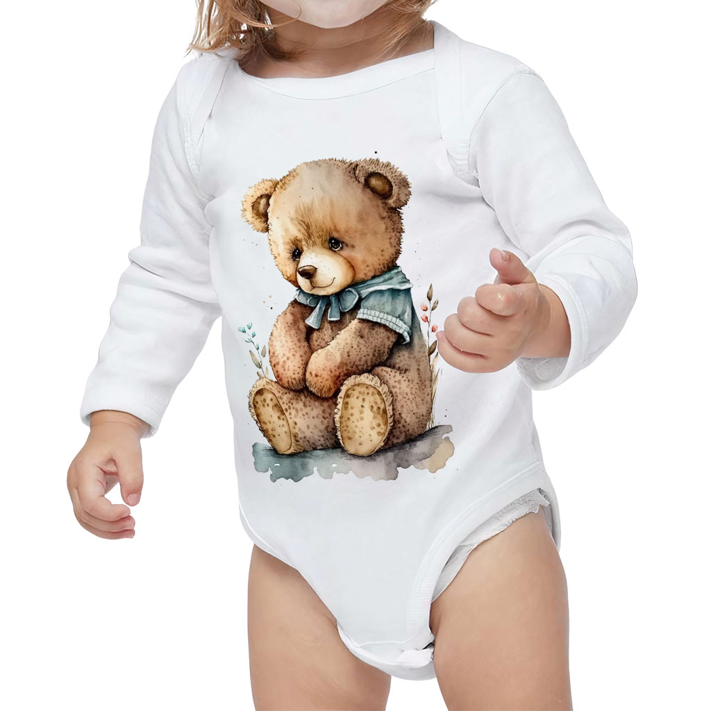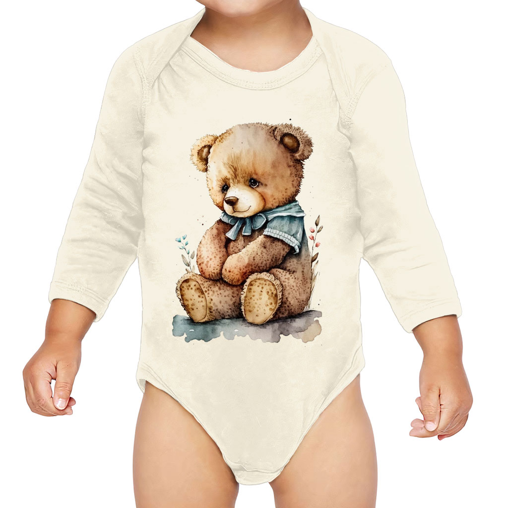 Cute Teddy Bear Baby Long Sleeve One-Piece – Animal Art Baby Long Sleeve Bodysuit – Watercolor Baby One-Piece