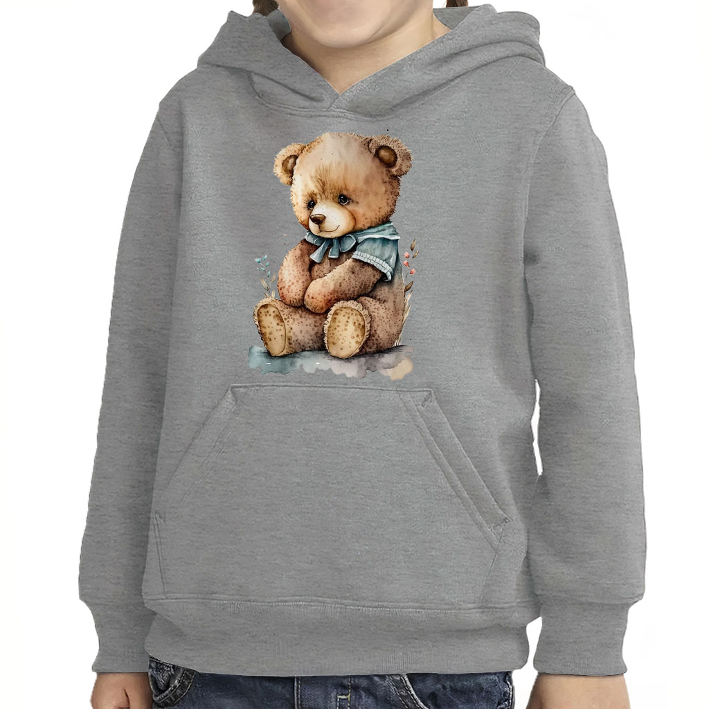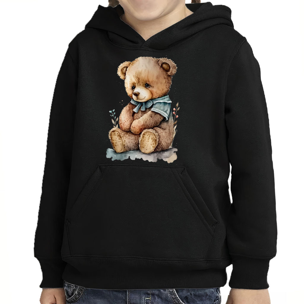 Cute Teddy Bear Toddler Pullover Hoodie – Animal Art Sponge Fleece Hoodie – Watercolor Hoodie for Kids