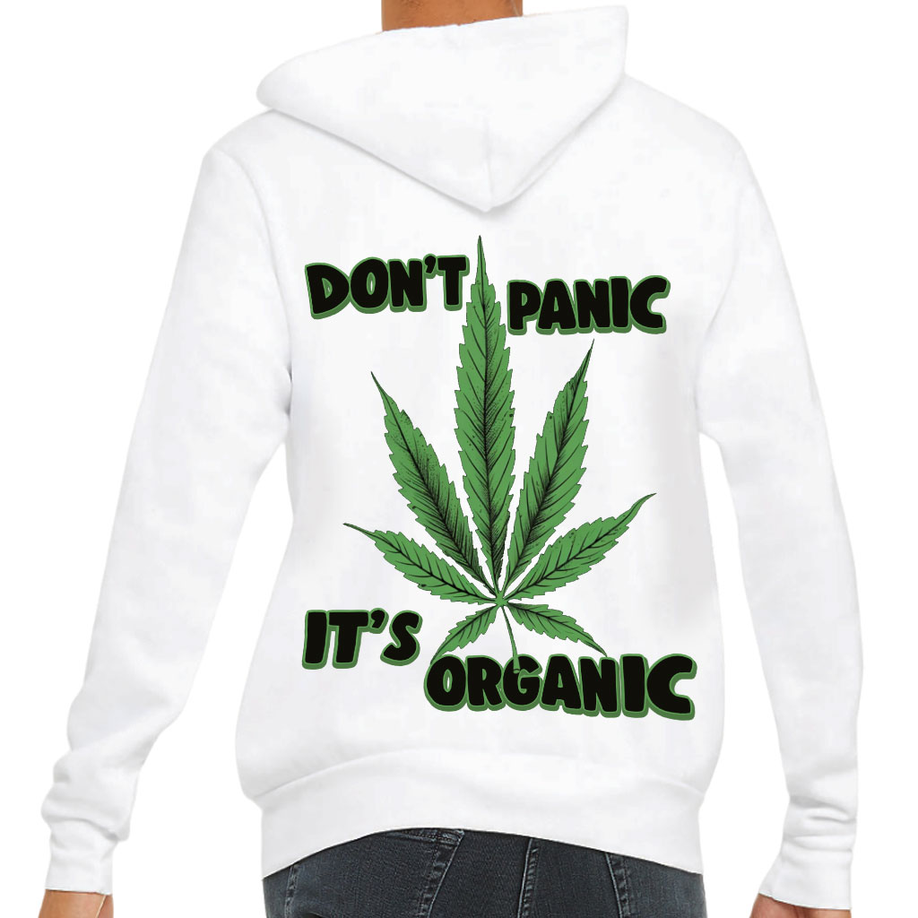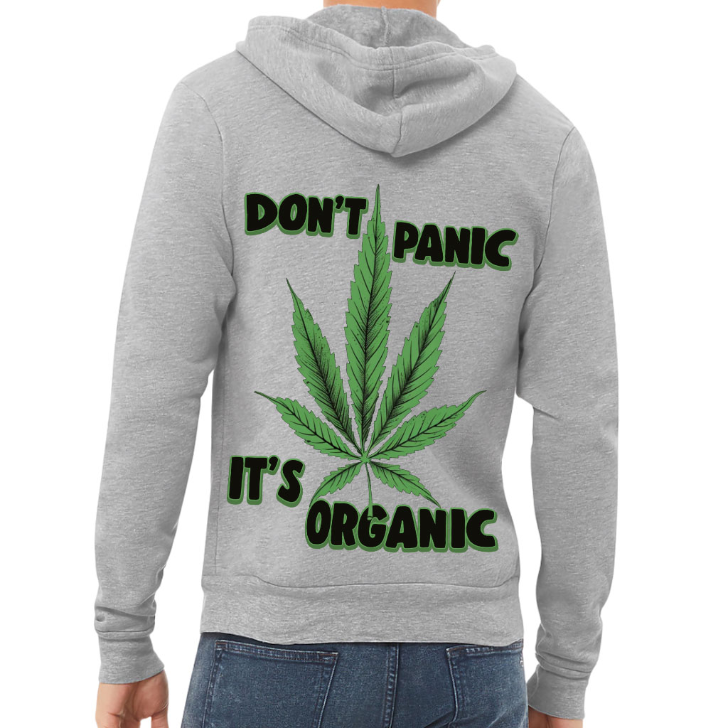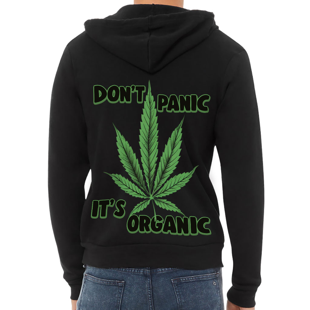 Don’t Panic It’s Organic Back Print Full-Zip Hoodie – Leaf Hooded Sweatshirt – Weed Hoodie