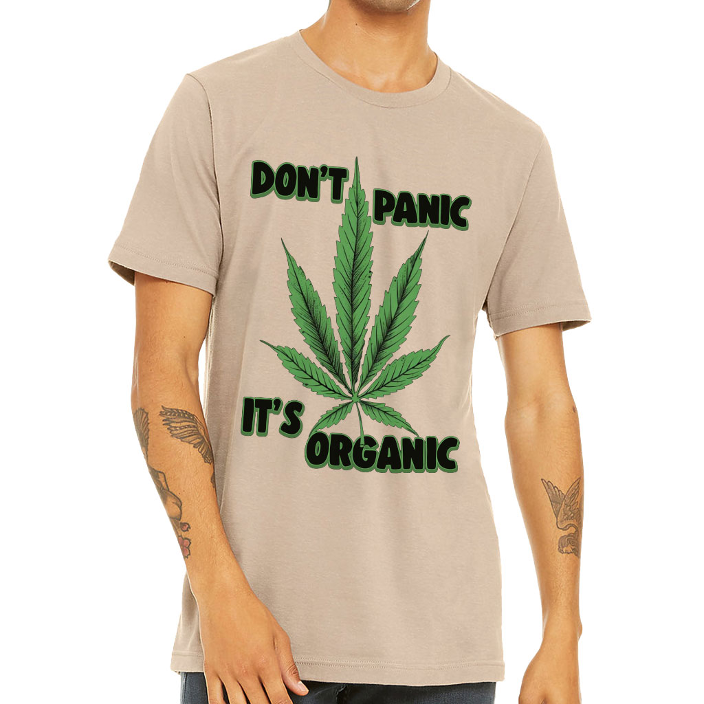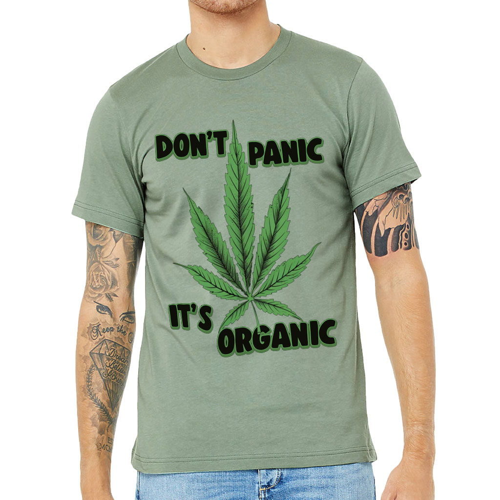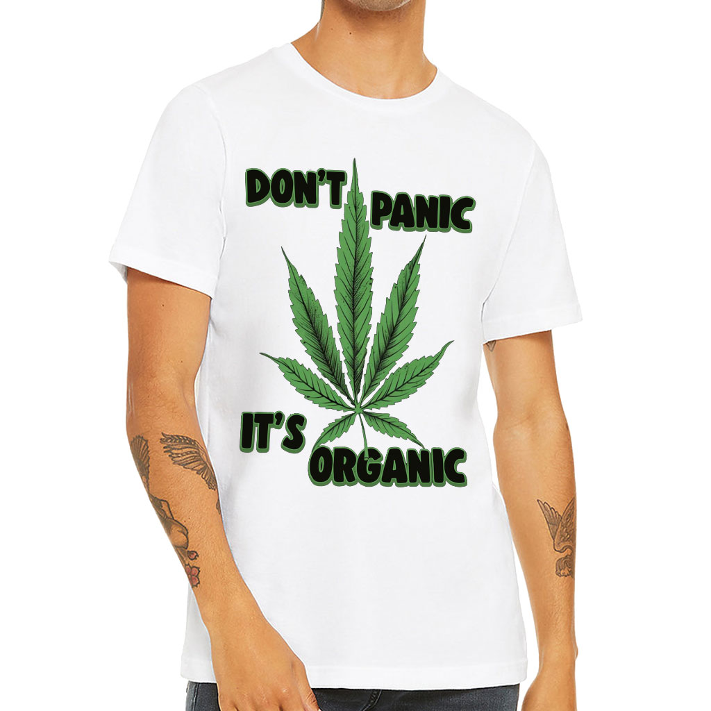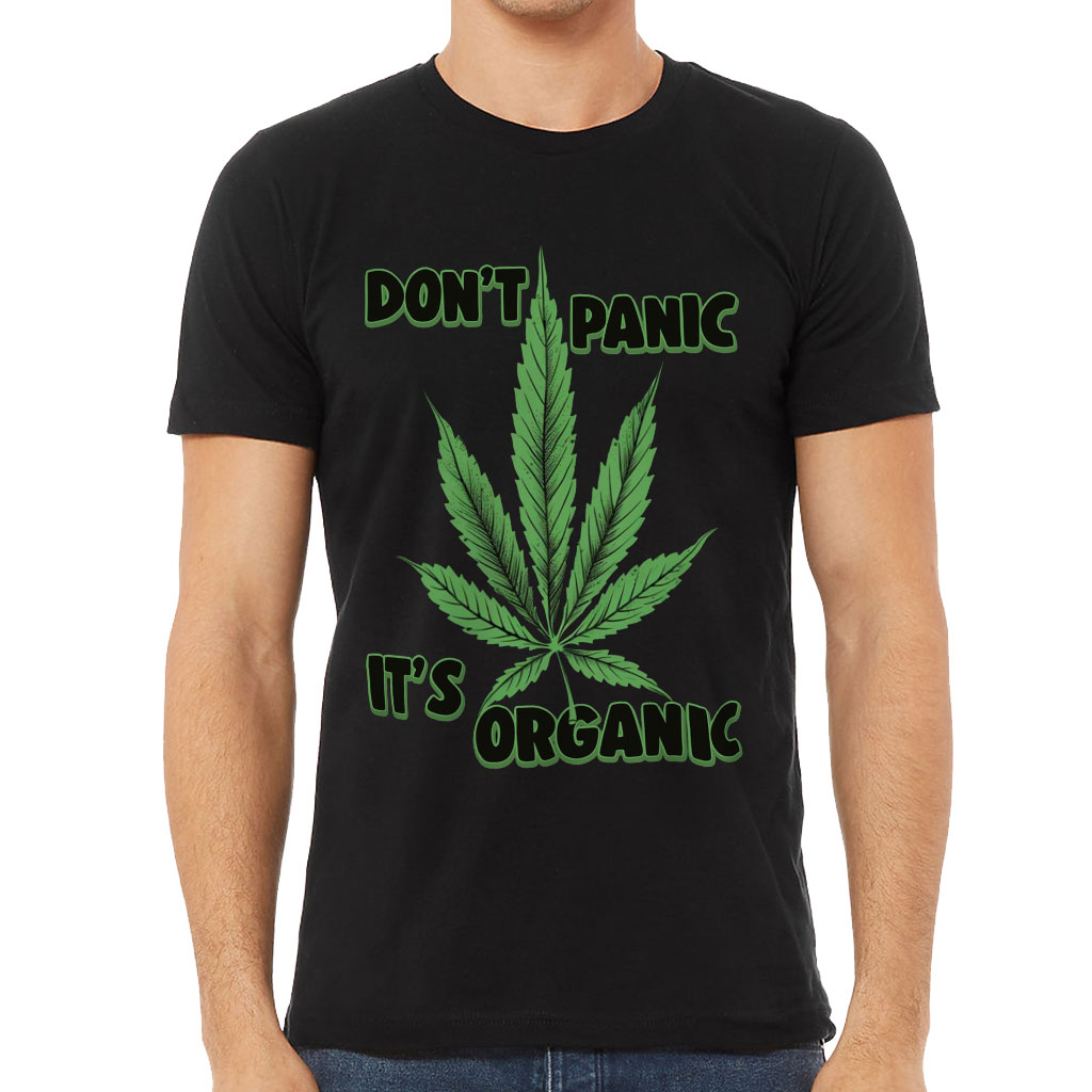 Don’t Panic It’s Organic Short Sleeve T-Shirt Weed T-Shirt is perfect for any occasion! With a retail fit and shoulder taping, this men’s classic makes a statement of style and class. Made of extremely soft cotton, the Short Sleeve T-Shirt ensures comfort all day long. Sideseamed construction ensures an excellent fit…