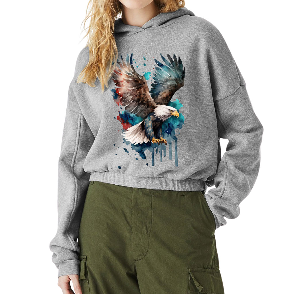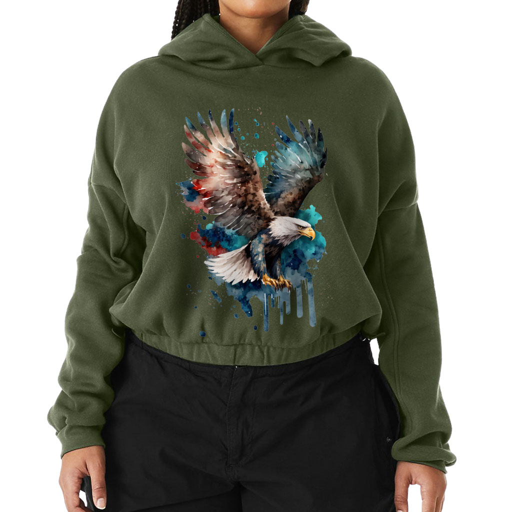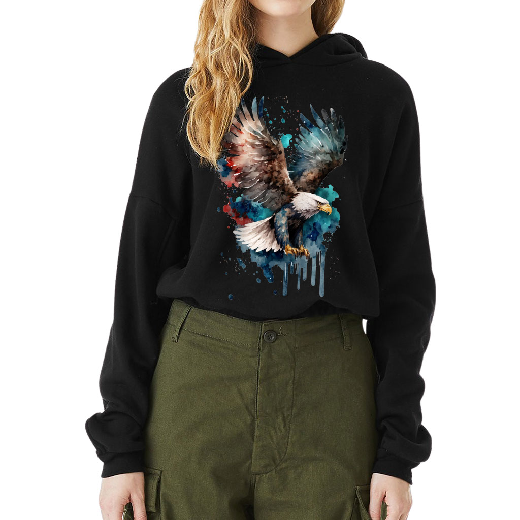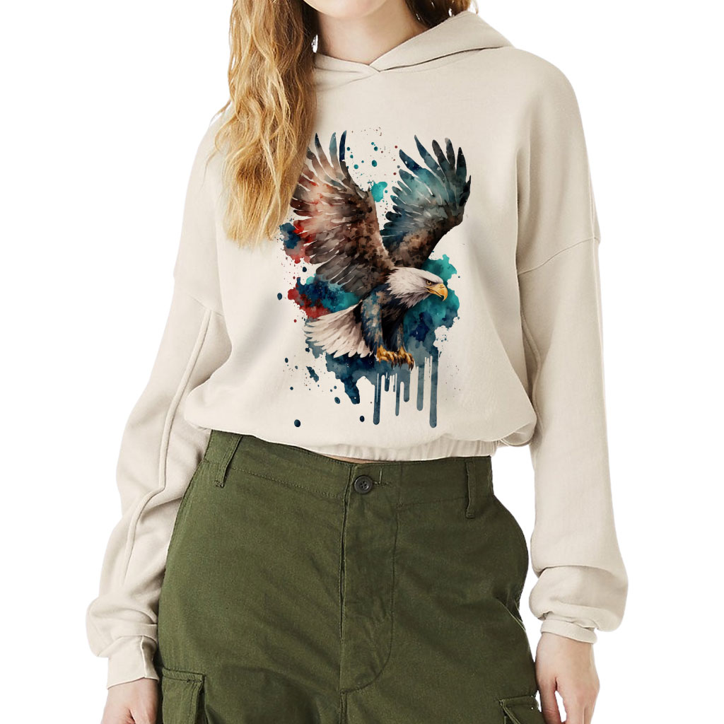 Eagle Painting Cinched Bottom Hoodie – Painting Women’s Hoodie – Eagle Hooded Sweatshirt