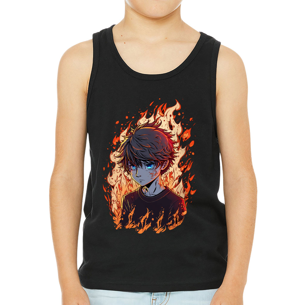 Flame Design Kids’ Jersey Tank – Fire Sleeveless T-Shirt – Graphic Kids’ Tank Top