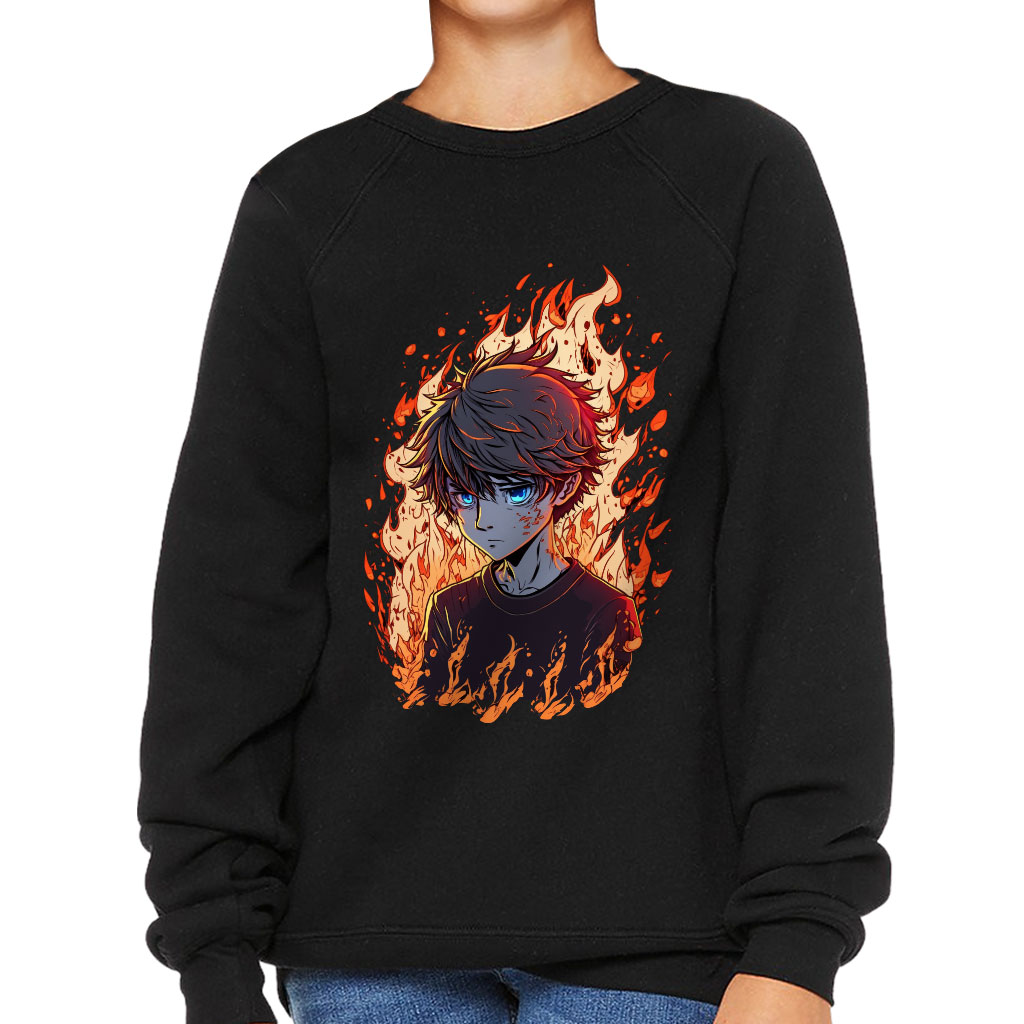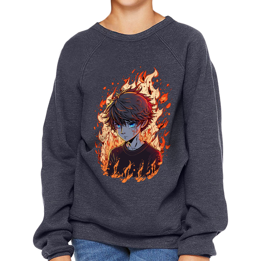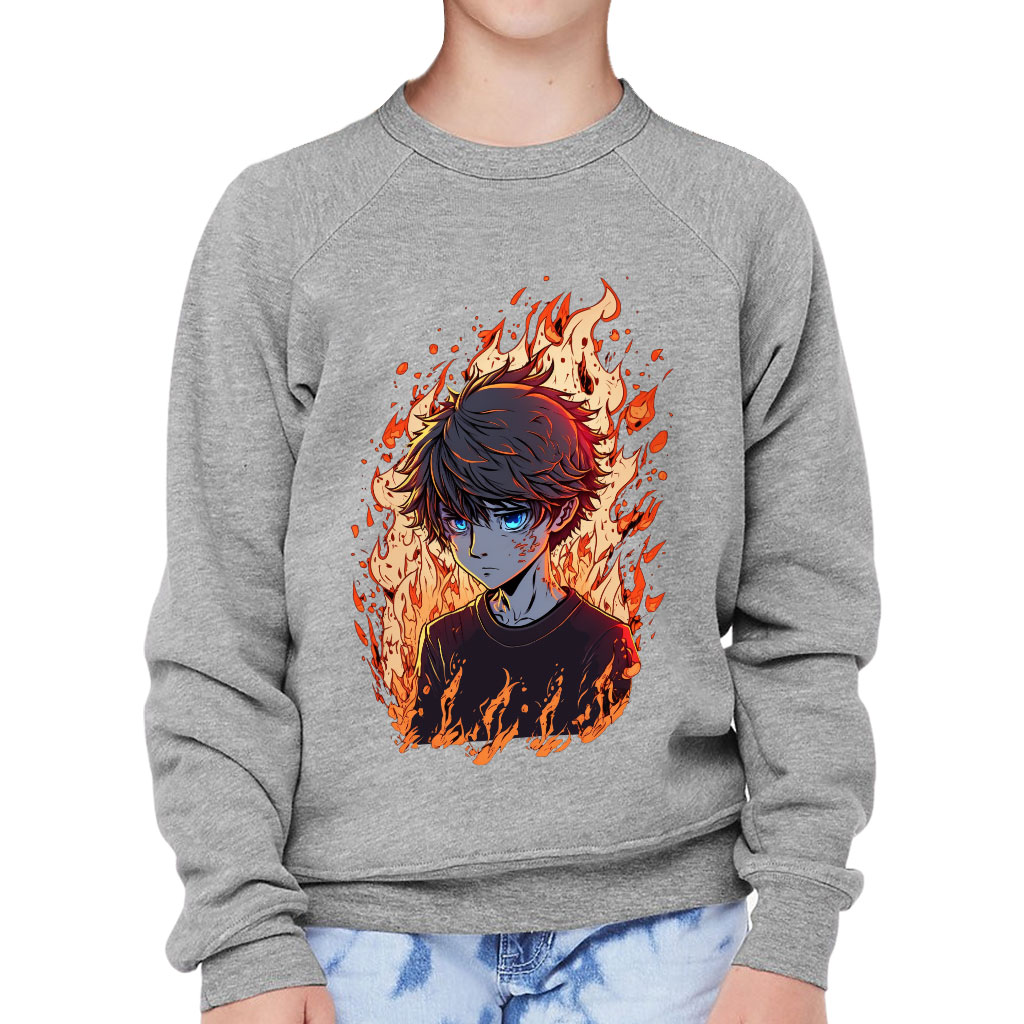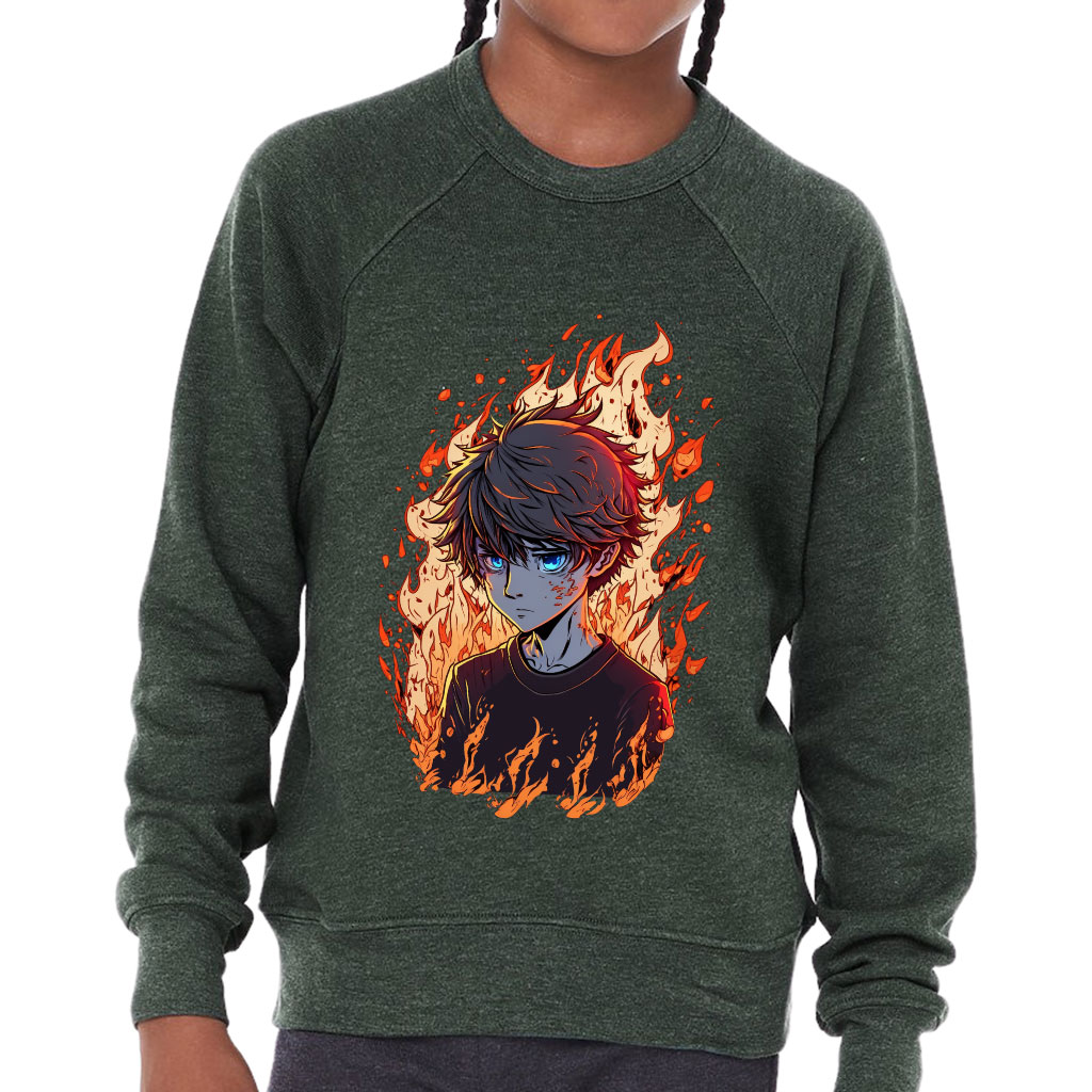Flame Design Kids’ Raglan Sweatshirt – Fire Sponge Fleece Sweatshirt – Graphic Sweatshirt