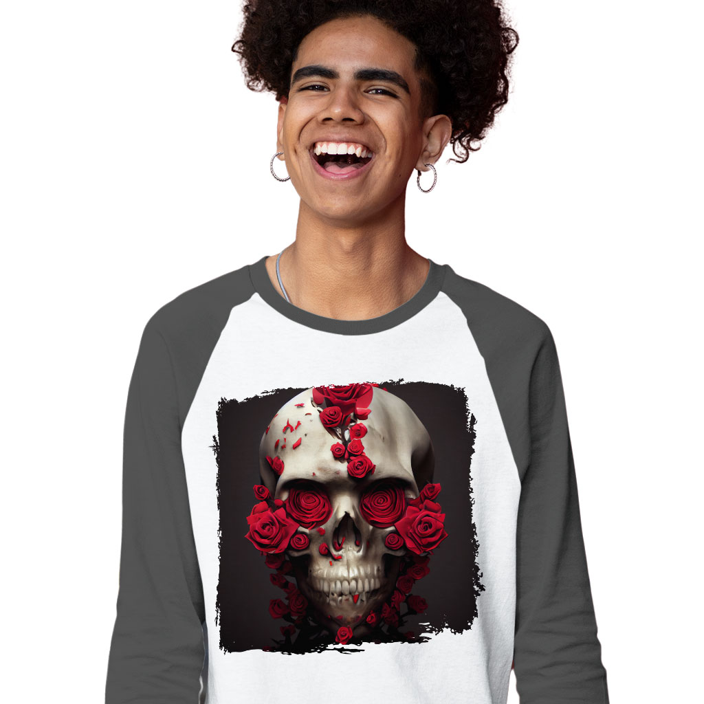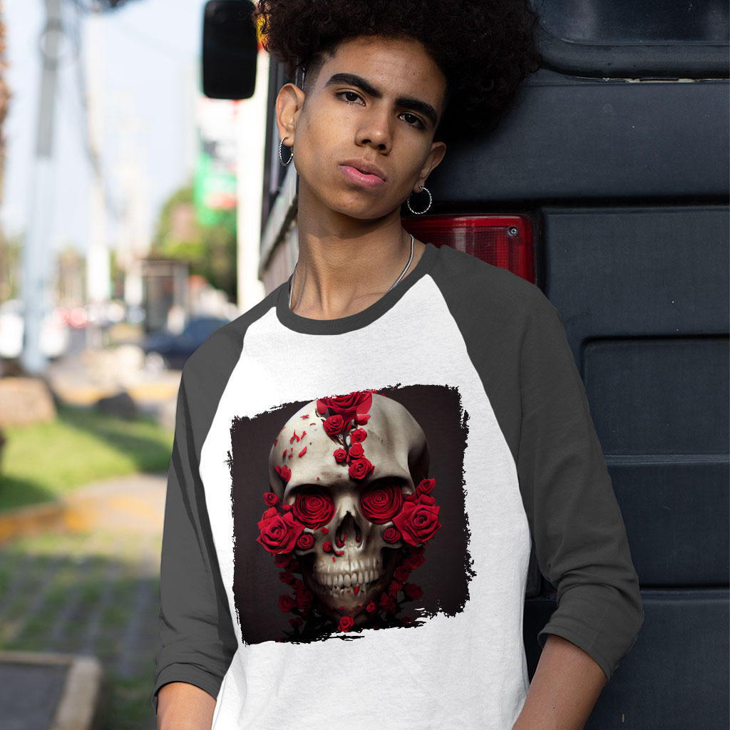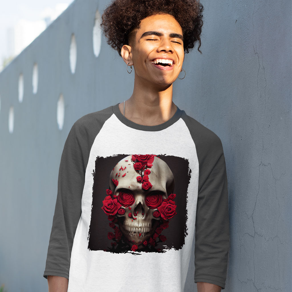 Floral Skull Baseball T-Shirt – Beautiful T-Shirt – Cool Tee Shirt