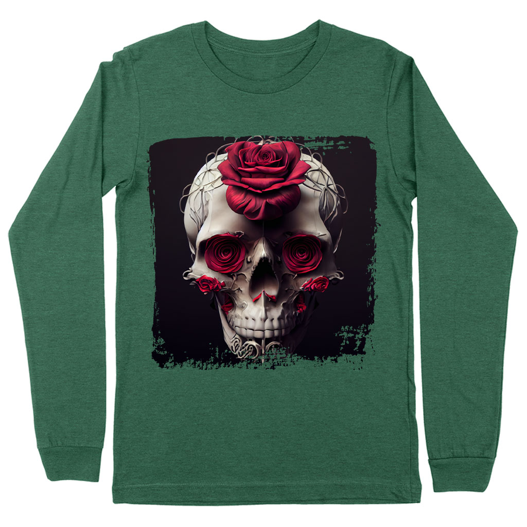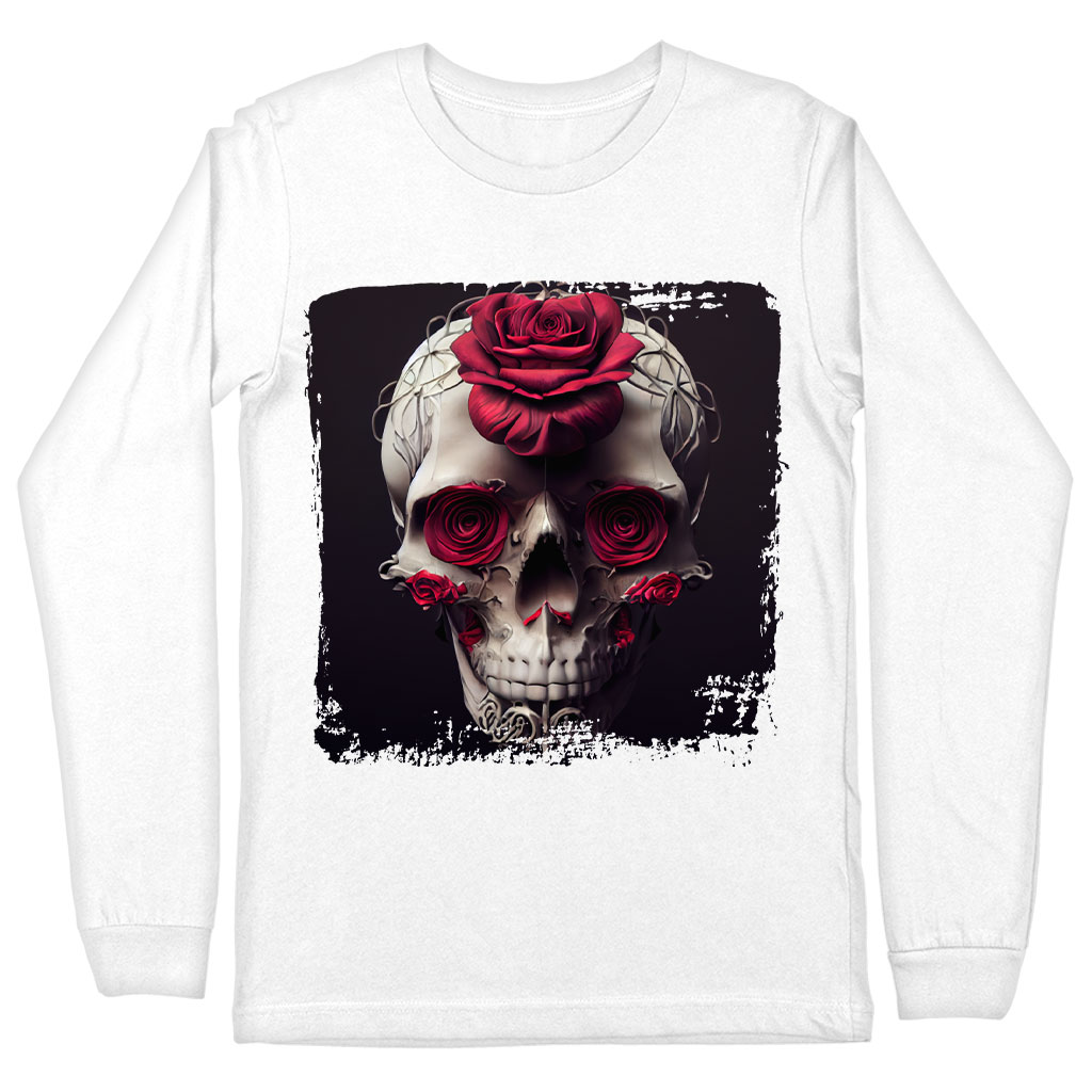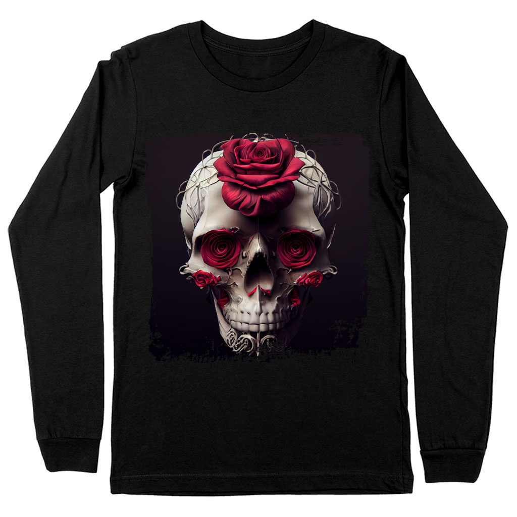 Flower Skull Long Sleeve T-Shirt – Roses T-Shirt – Skull Long Sleeve Tee Shirt
