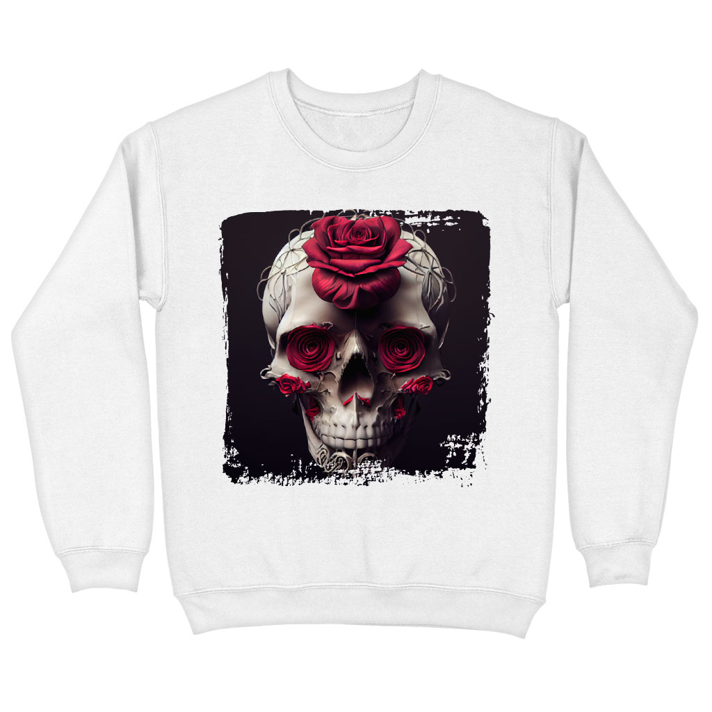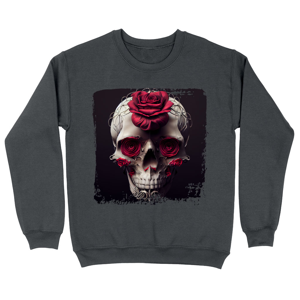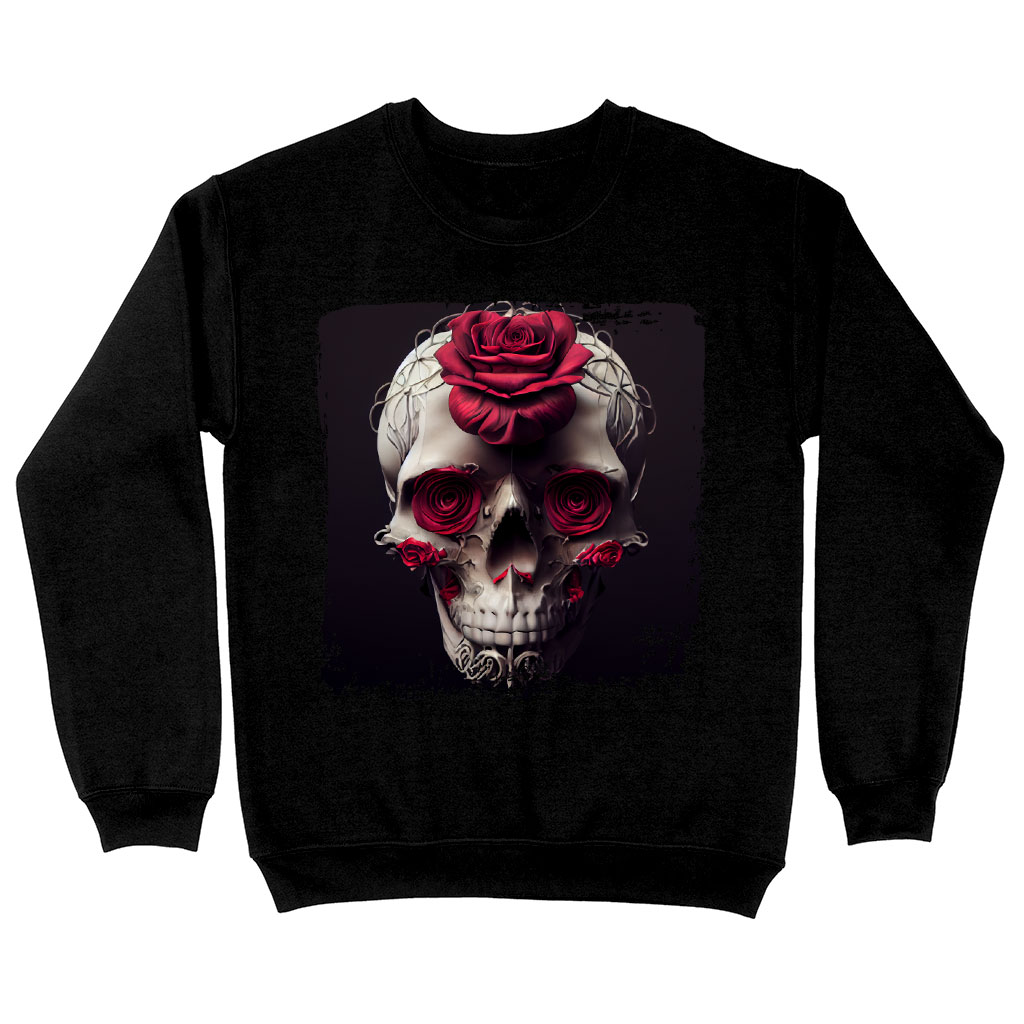 Flower Skull Sweatshirt – Roses Crewneck Sweatshirt – Skull Sweatshirt