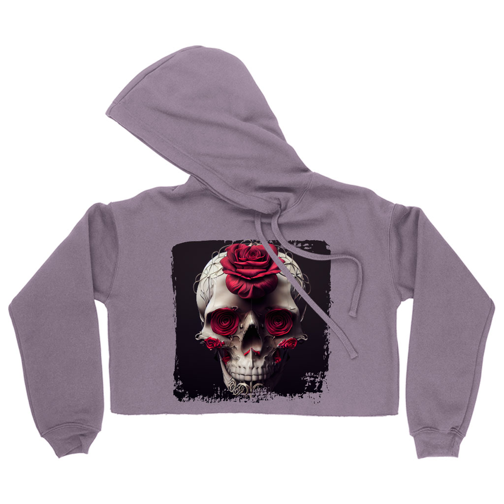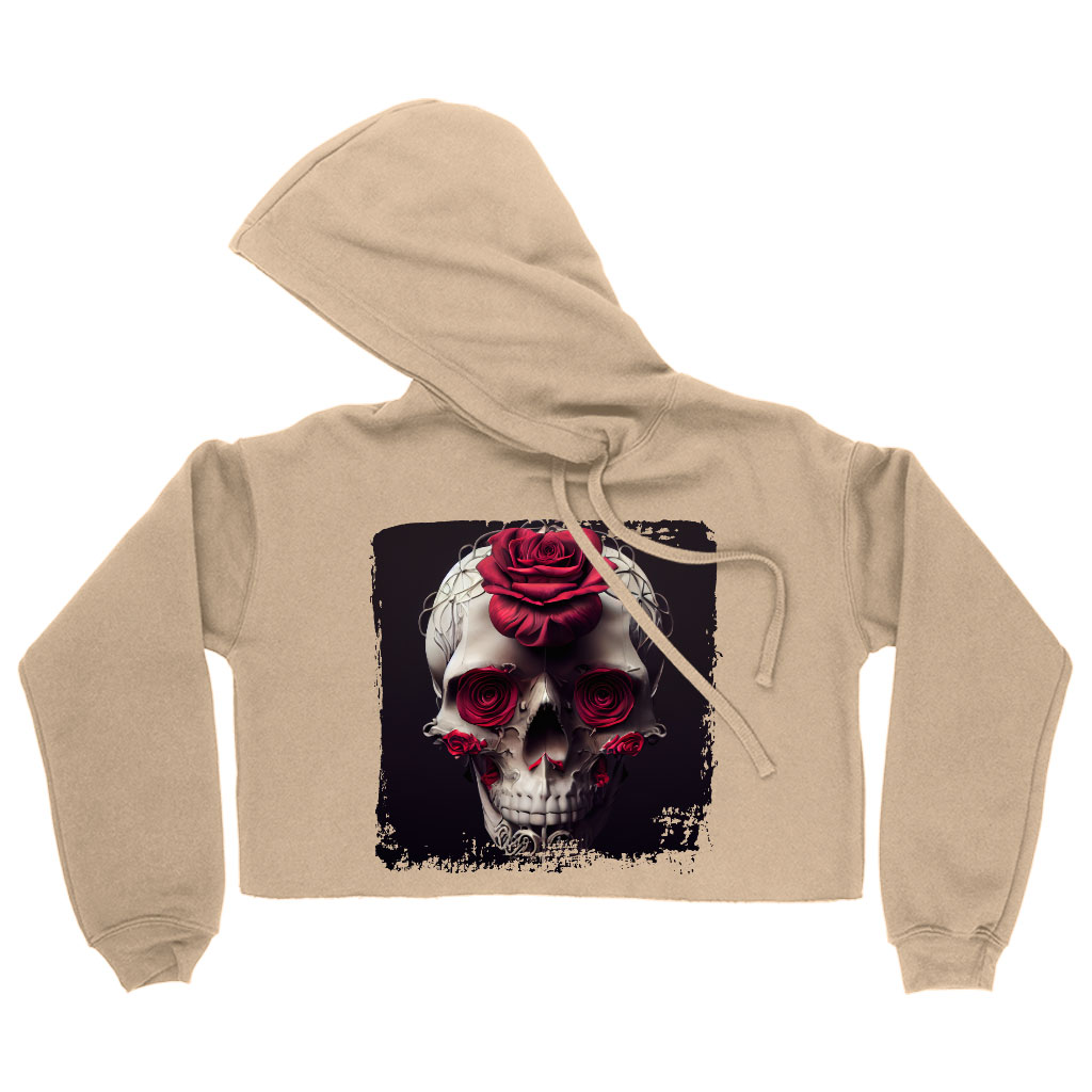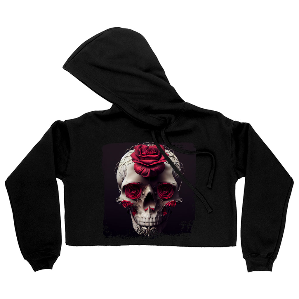 Flower Skull Women’s Cropped Hoodie – Roses Cropped Hoodie – Skull Hooded Sweatshirt
