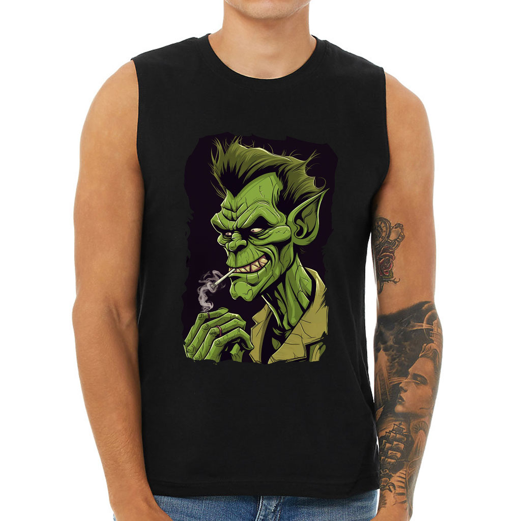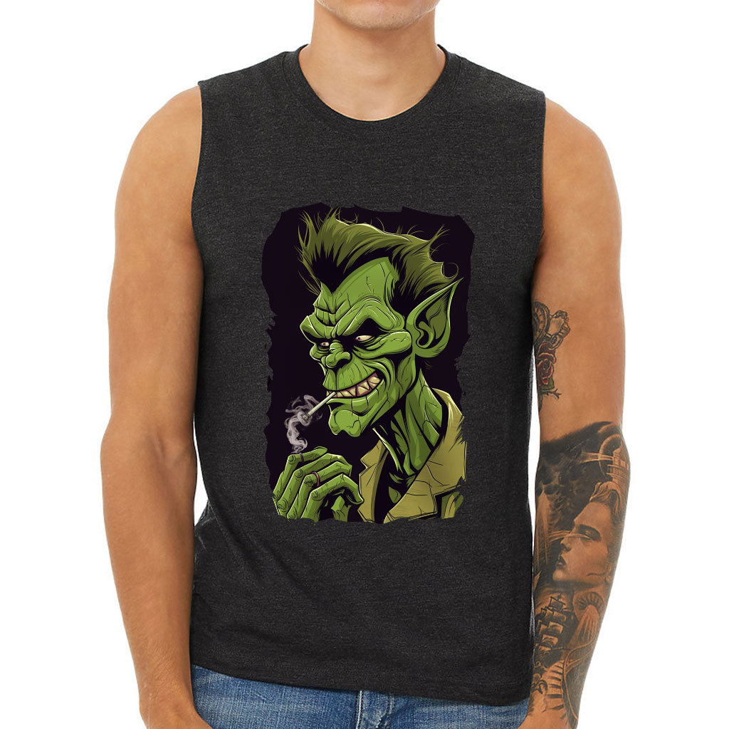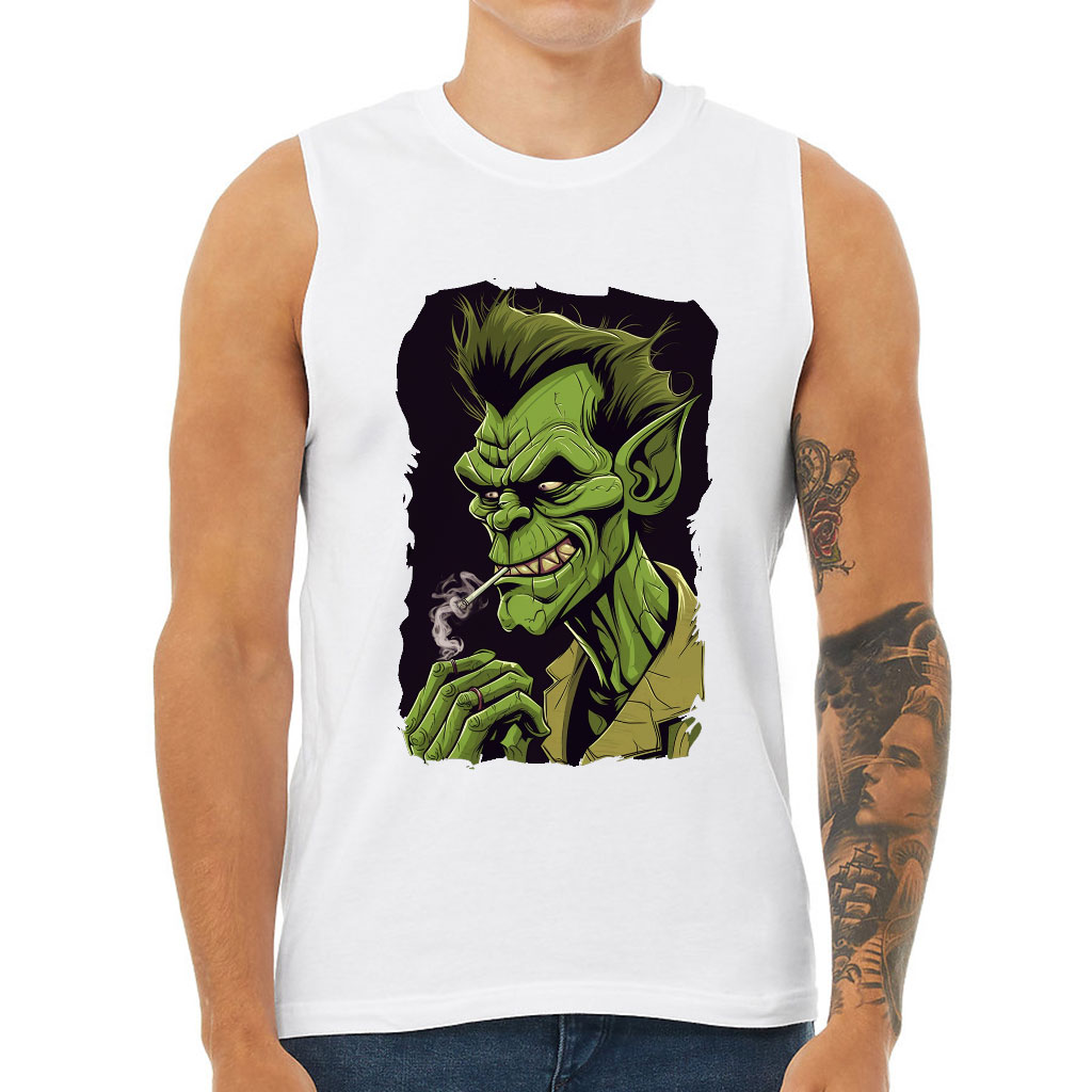 Funny Print Men’s Muscle Tank – Smoking Men’s Sleeveless T-Shirt – Printed Tank