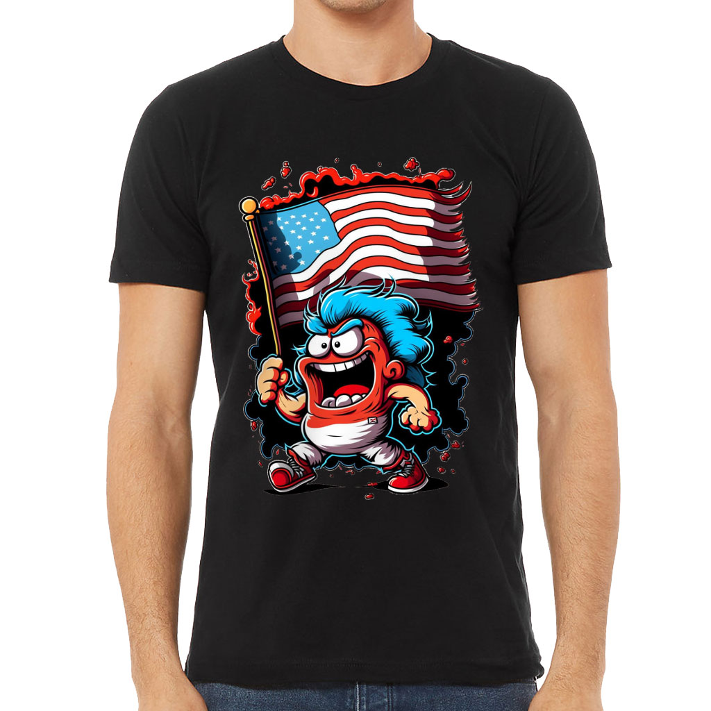 Funny USA Flag Short Sleeve T-Shirt – Cartoon T-Shirt – Funny Short Sleeve Tee
