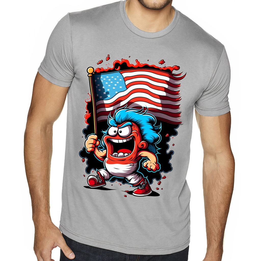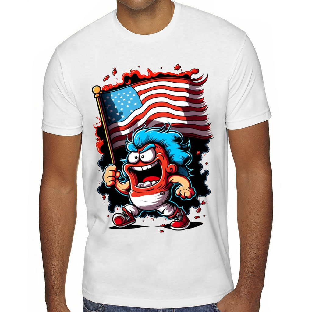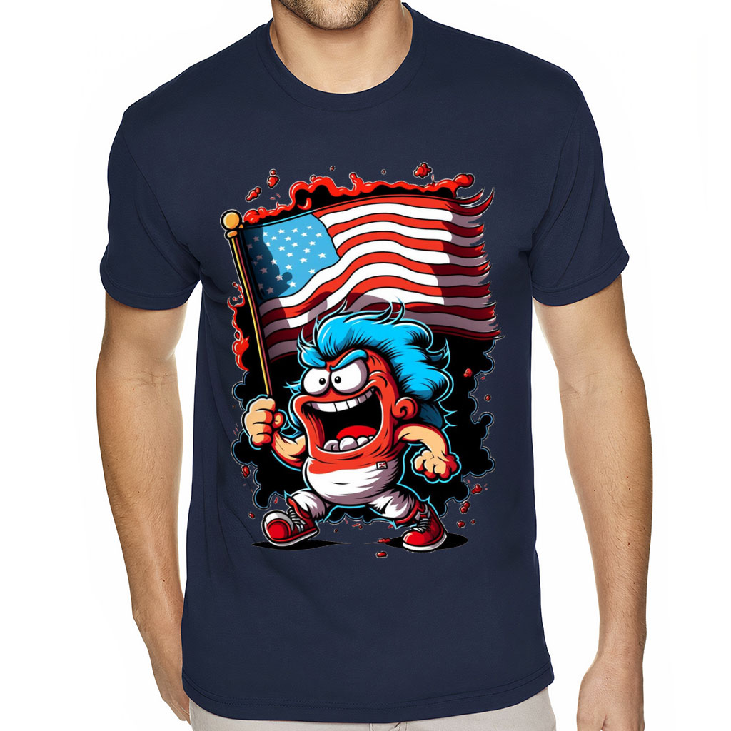 Funny USA Flag Sueded T-Shirt – Cartoon T-Shirt – Funny Sueded Tee