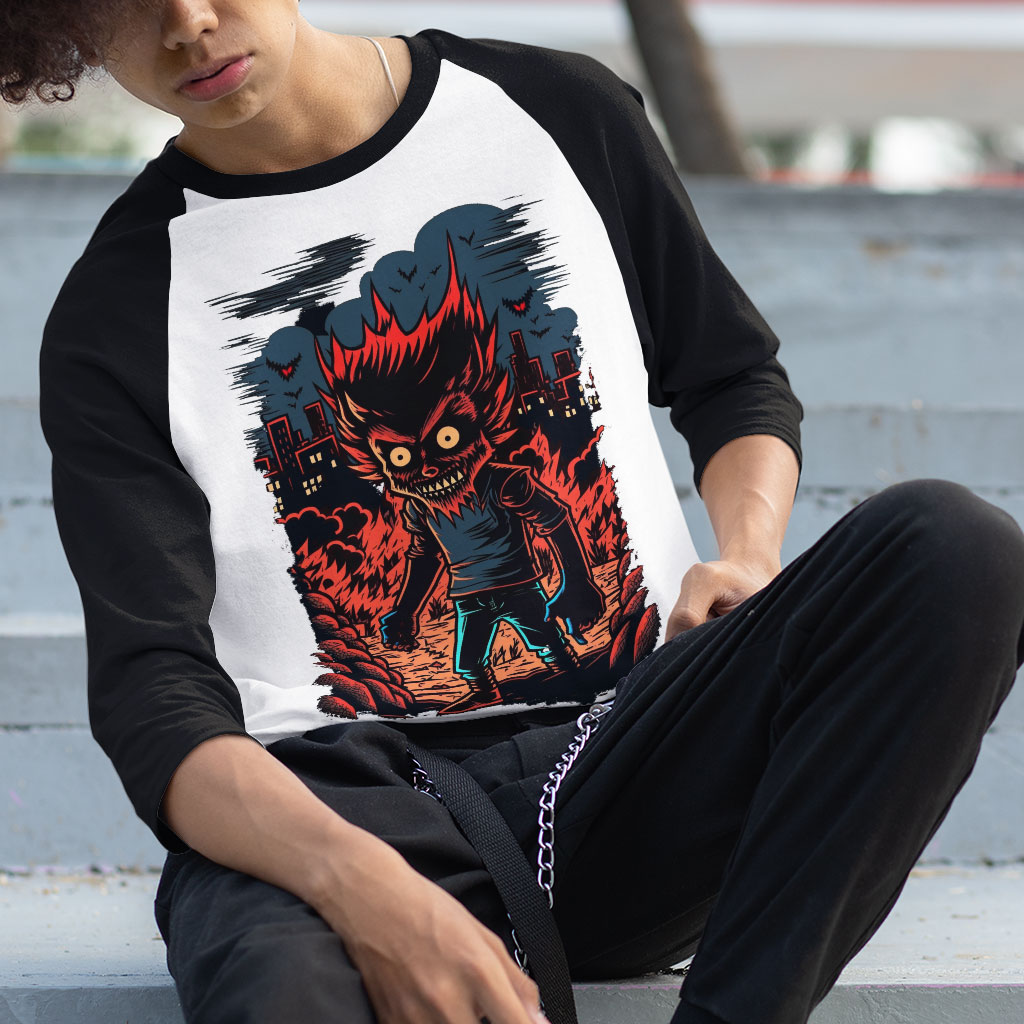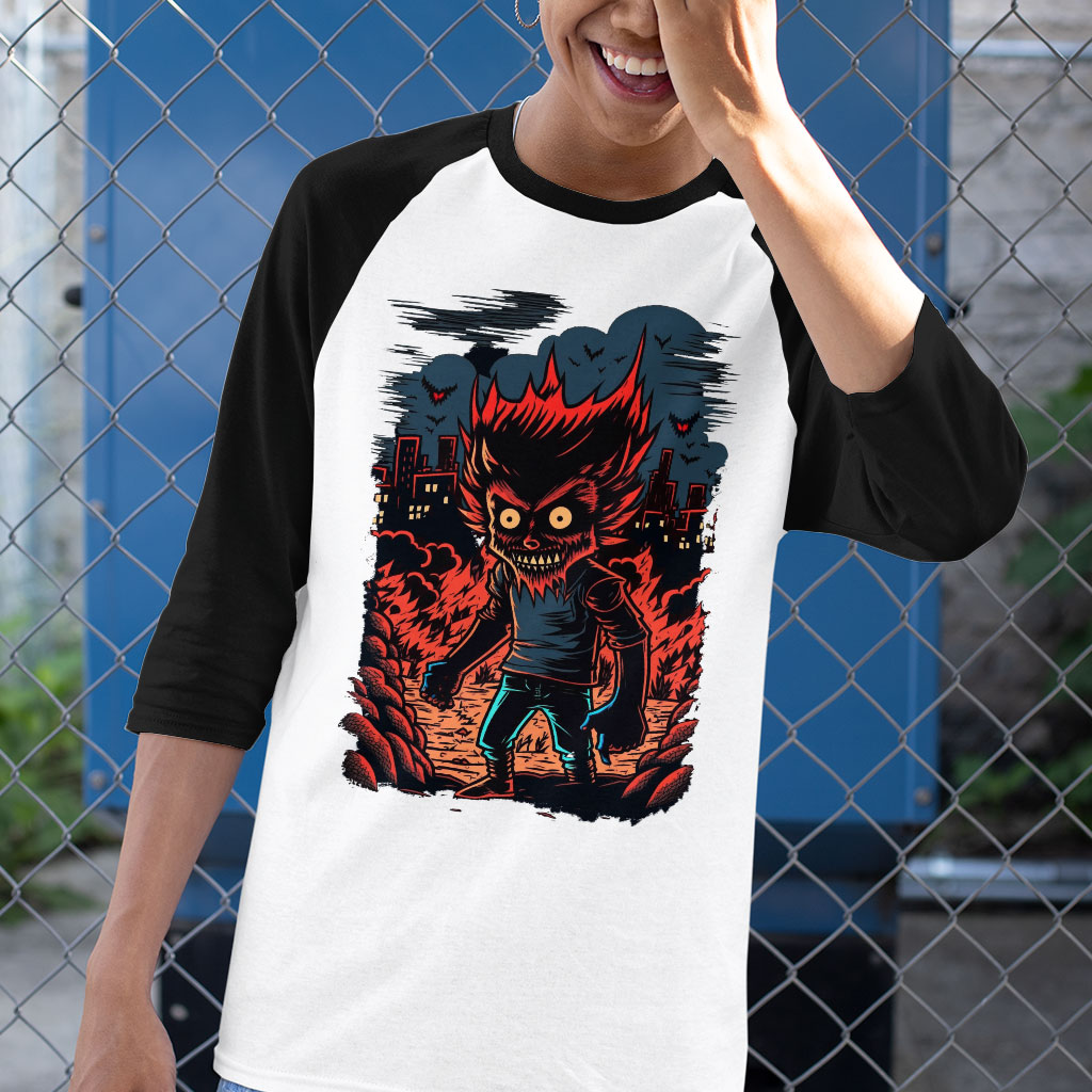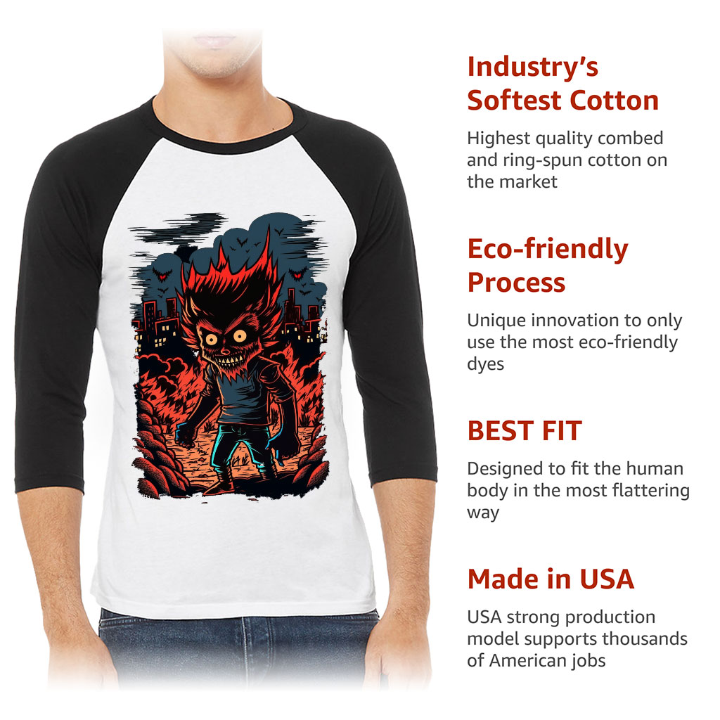 features raglan 3/4 sleeves and a modern fit that is perfect for a day