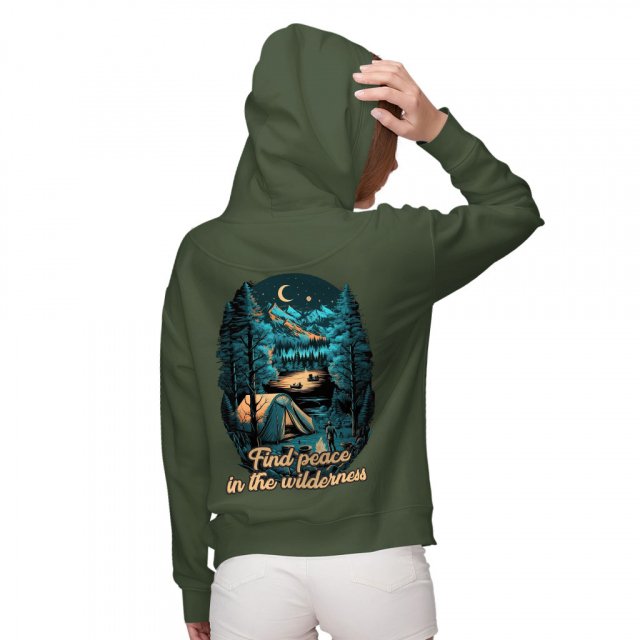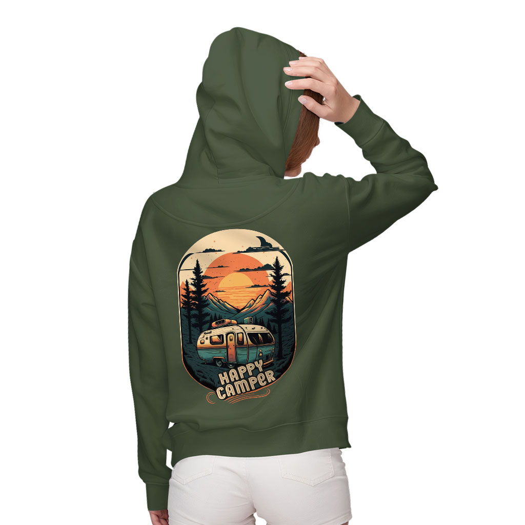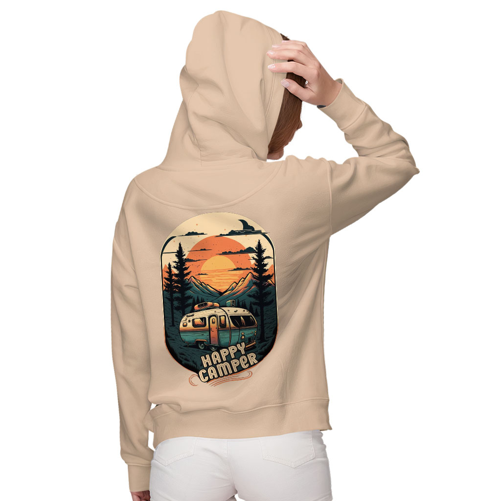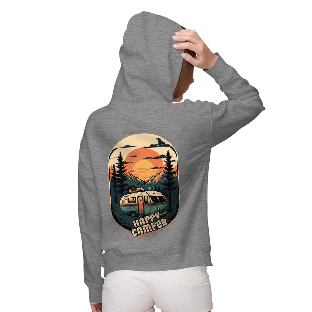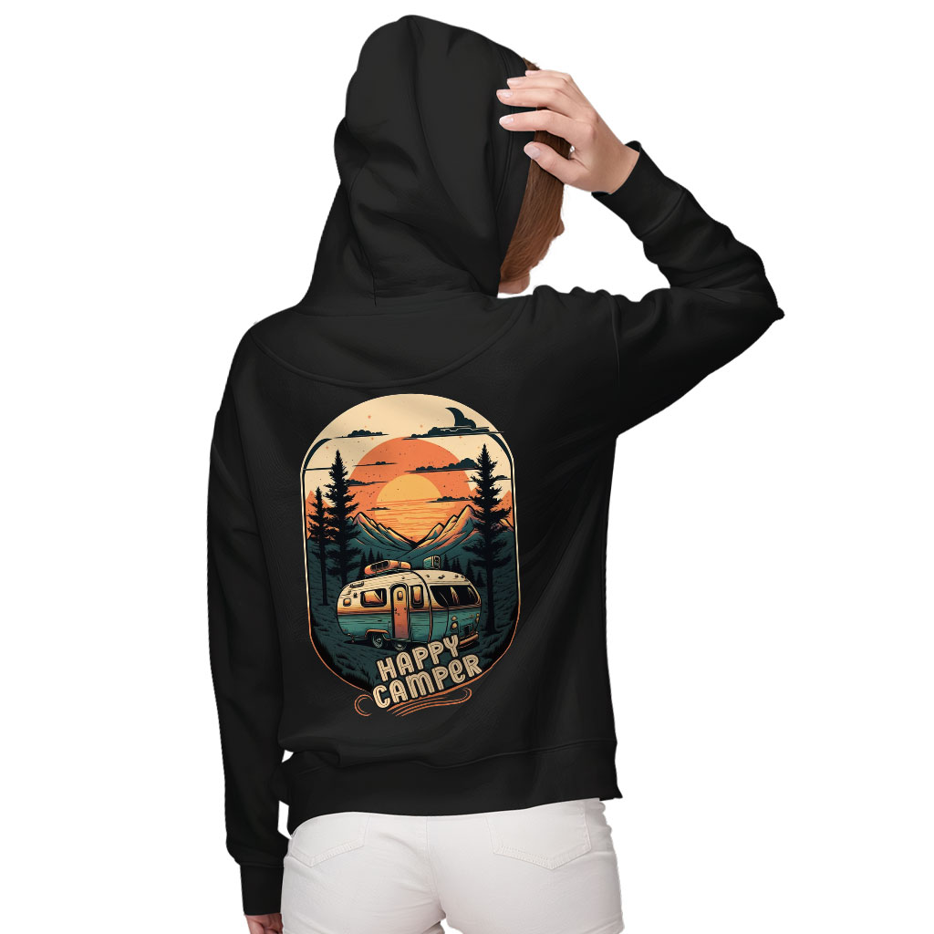 Happy Camper Women’s Zip Hoodie – Sunset Hooded Sweatshirt – Graphic Art Hoodie