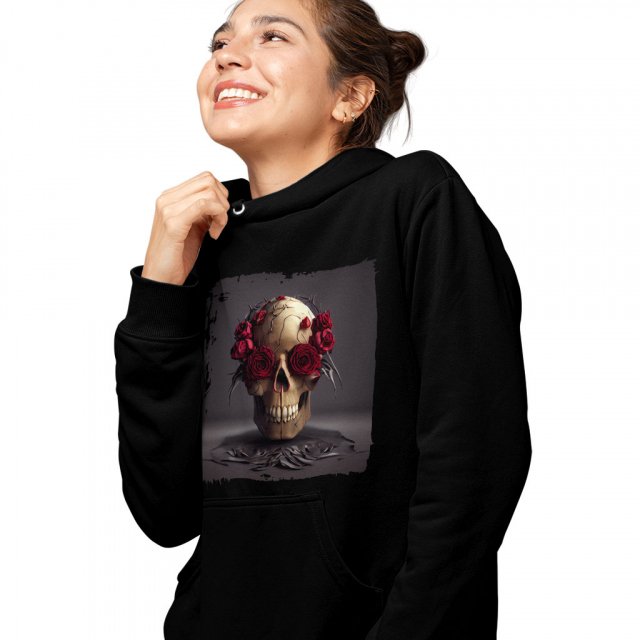 Cool Skull Graphic Hooded Sweatshirt – Art Hoodie – Roses Hoodie