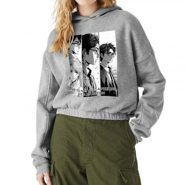 Love Is Not Just a Feeling Cinched Bottom Hoodie – Character Women’s Hoodie – Quote Hooded Sweatshirt