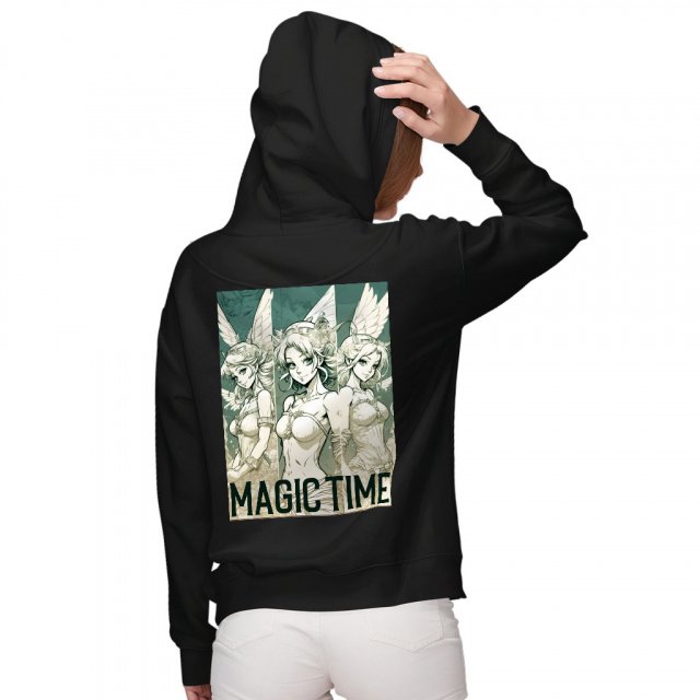 Magic Time Women’s Zip Hoodie – Cartoon Hooded Sweatshirt – Girl Art Hoodie