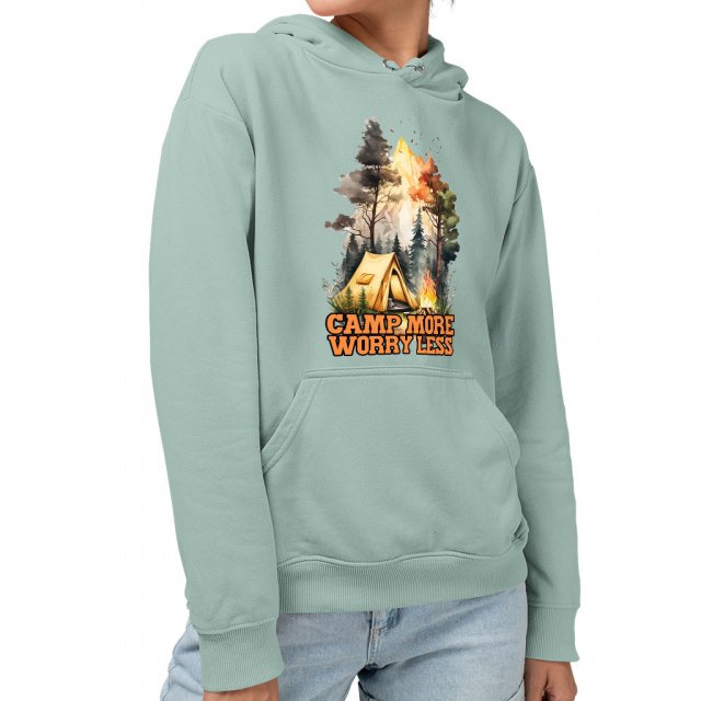 Camp More Worry Less Sponge Fleece Hoodie – Watercolor Hoodie – Printed Hooded Sweatshirt