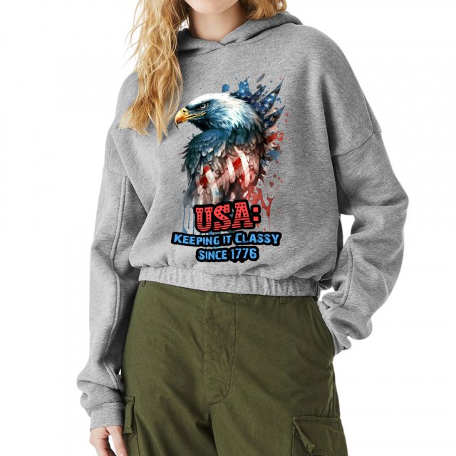 USA Keeping It Classy Since 1776 Cinched Bottom Hoodie – Cool Women’s Hoodie – Bird Hooded Sweatshirt