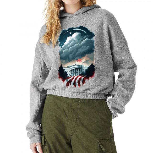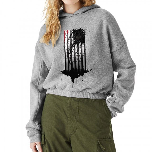 USA Flag Print Women’s Cropped Hoodie – Patriotic Cropped Hoodie – Painting Hooded Sweatshirt