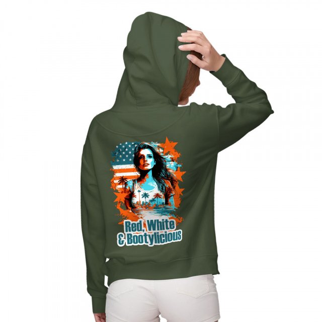 Red White and Bootylicious Women’s Zip Hoodie – Cute Hooded Sweatshirt – America Hoodie
