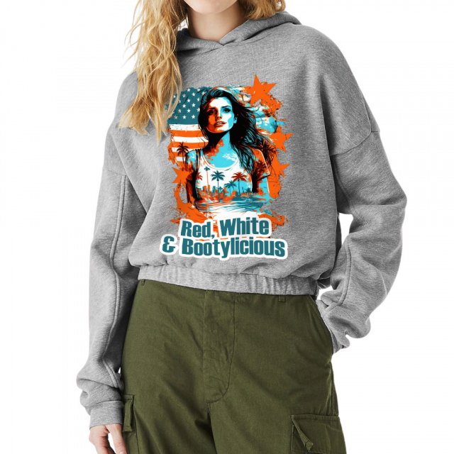 Red White and Bootylicious Cinched Bottom Hoodie – Cute Women’s Hoodie – America Hooded Sweatshirt