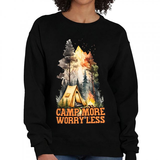 Camp More Worry Less Crewneck Sweatshirt – Watercolor Women’s Sweatshirt – Printed Sweatshirt