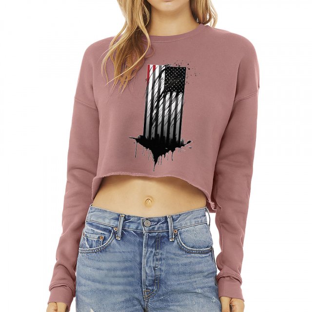 USA Flag Design Cropped Sweatshirt – Cityscape Women’s Sweatshirt – Patriotic Crop Crew Sweatshirt