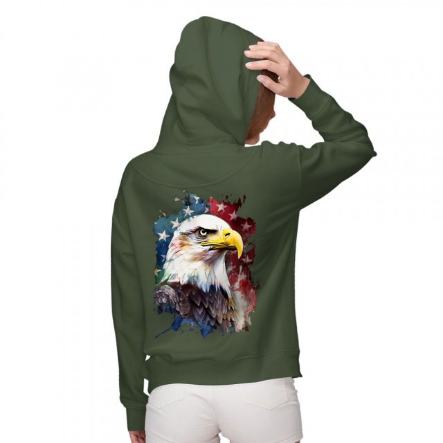USA Print Women’s Zip Hoodie – Eagle Hooded Sweatshirt – Unique Hoodie