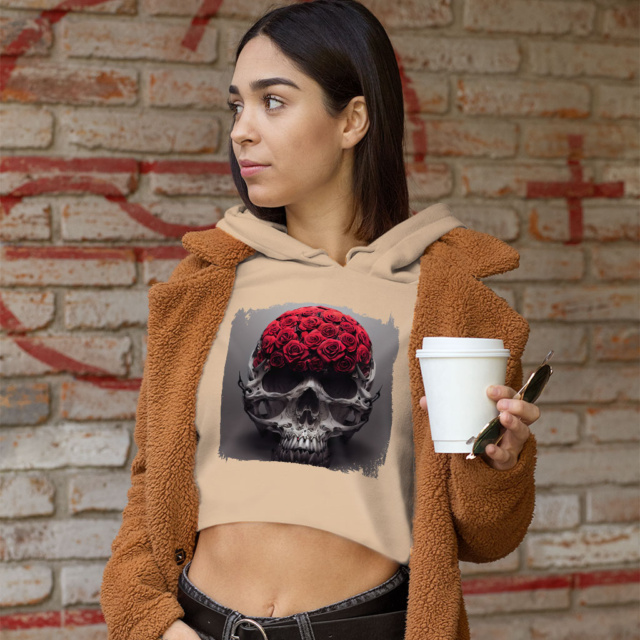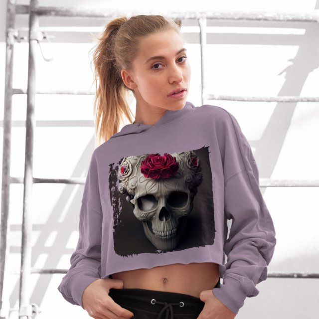 Skull Rose Women’s Cropped Hoodie – Gothic Cropped Hoodie – Floral Hooded Sweatshirt