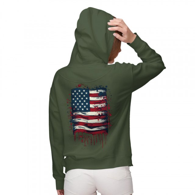 USA Flag Print Women’s Zip Hoodie – Patriotic Hooded Sweatshirt – Painting Hoodie