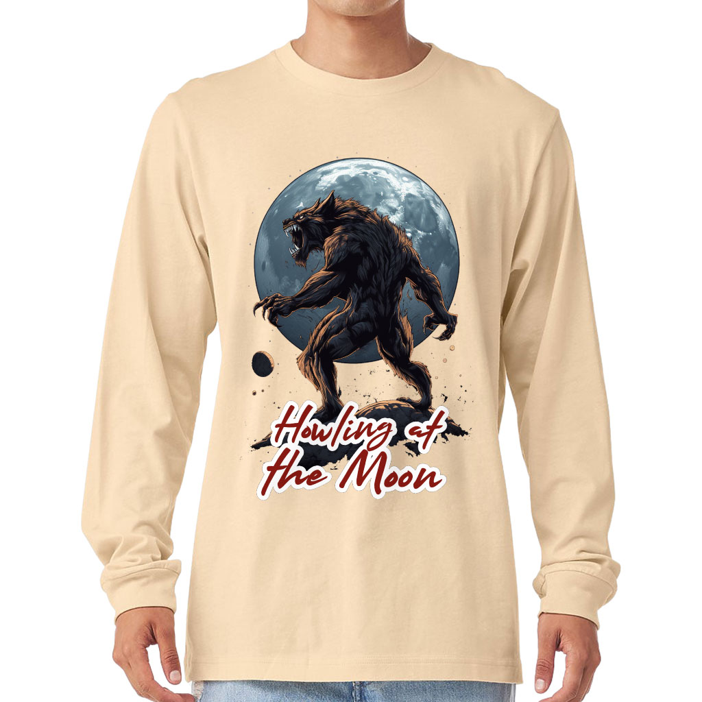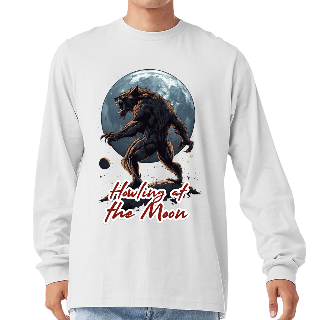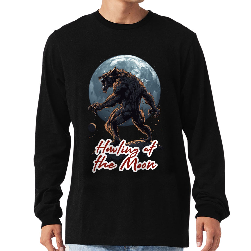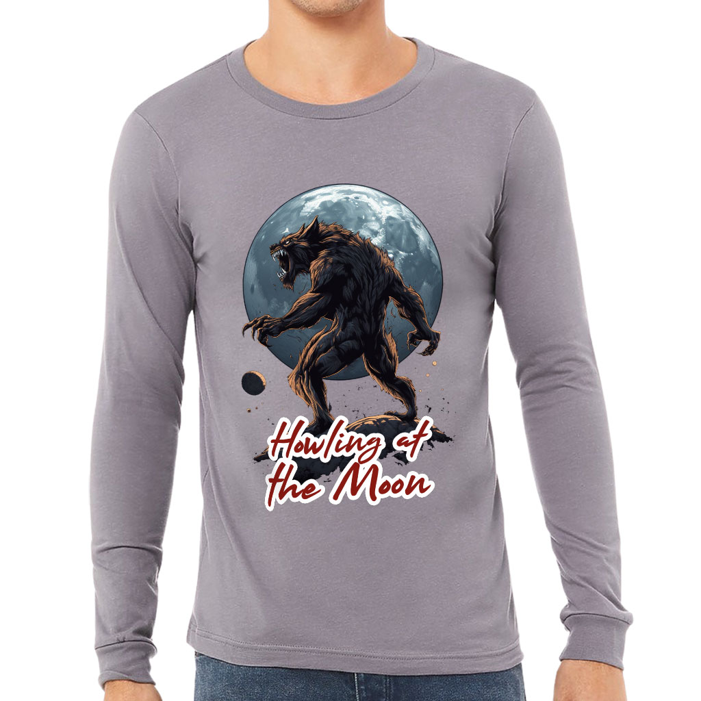 Howling at the Moon Long Sleeve T-Shirt – Unique Items – Gifts for Werewolf Lovers for Men