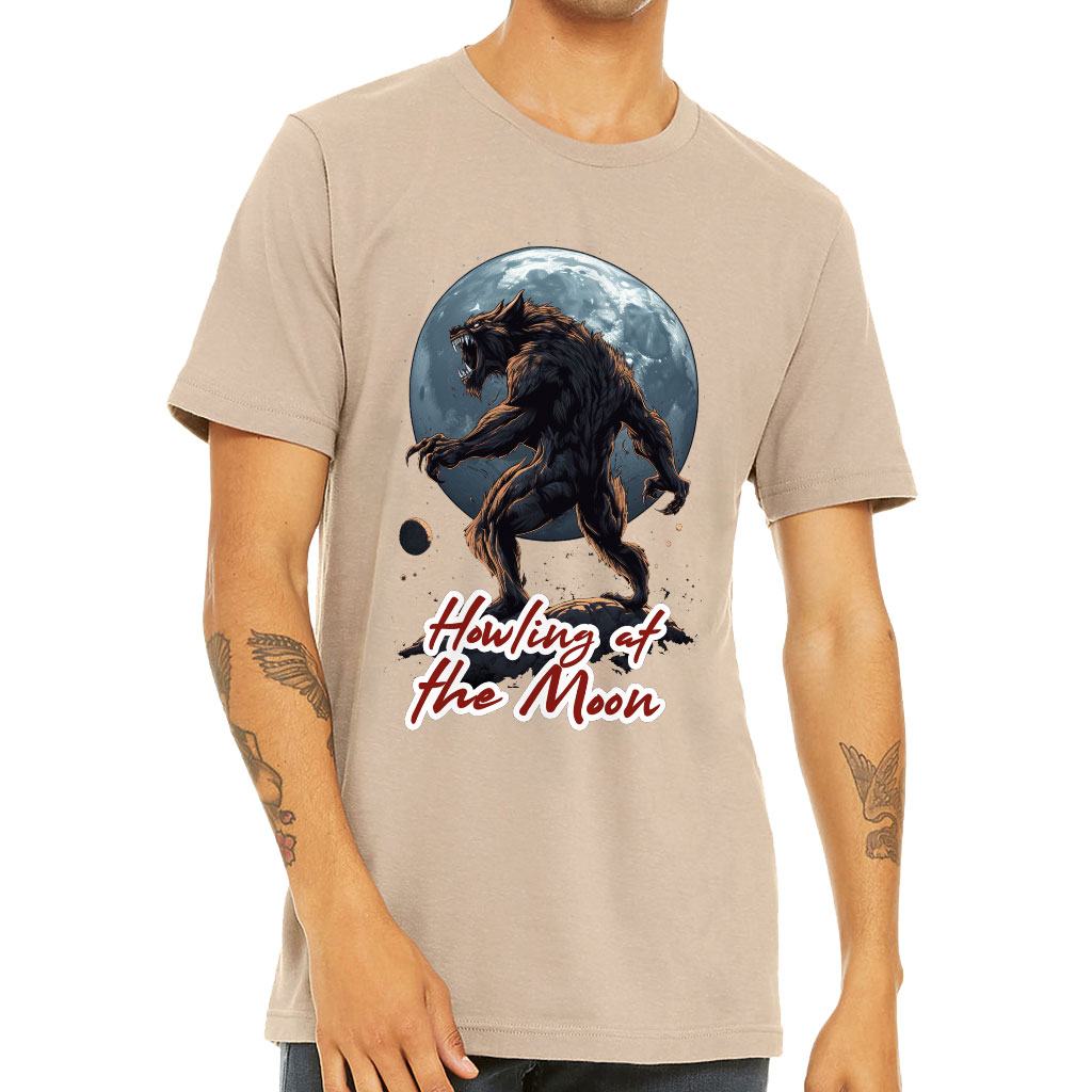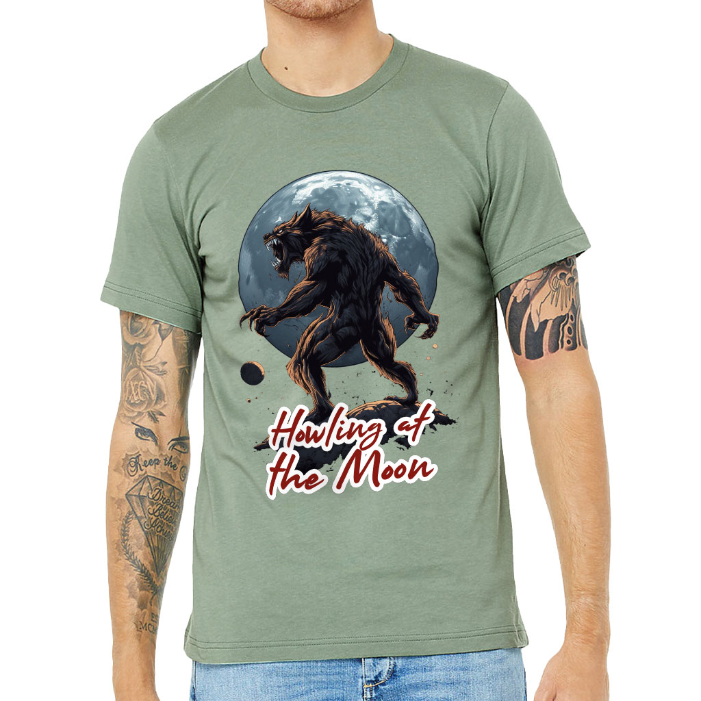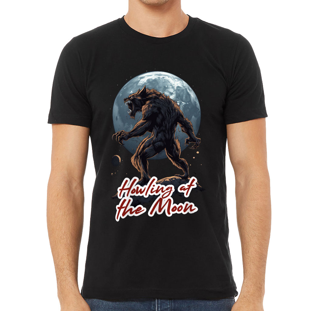 Howling at the Moon Short Sleeve T-Shirt – Gifts for Werewolf Lovers for Men – Unique Items