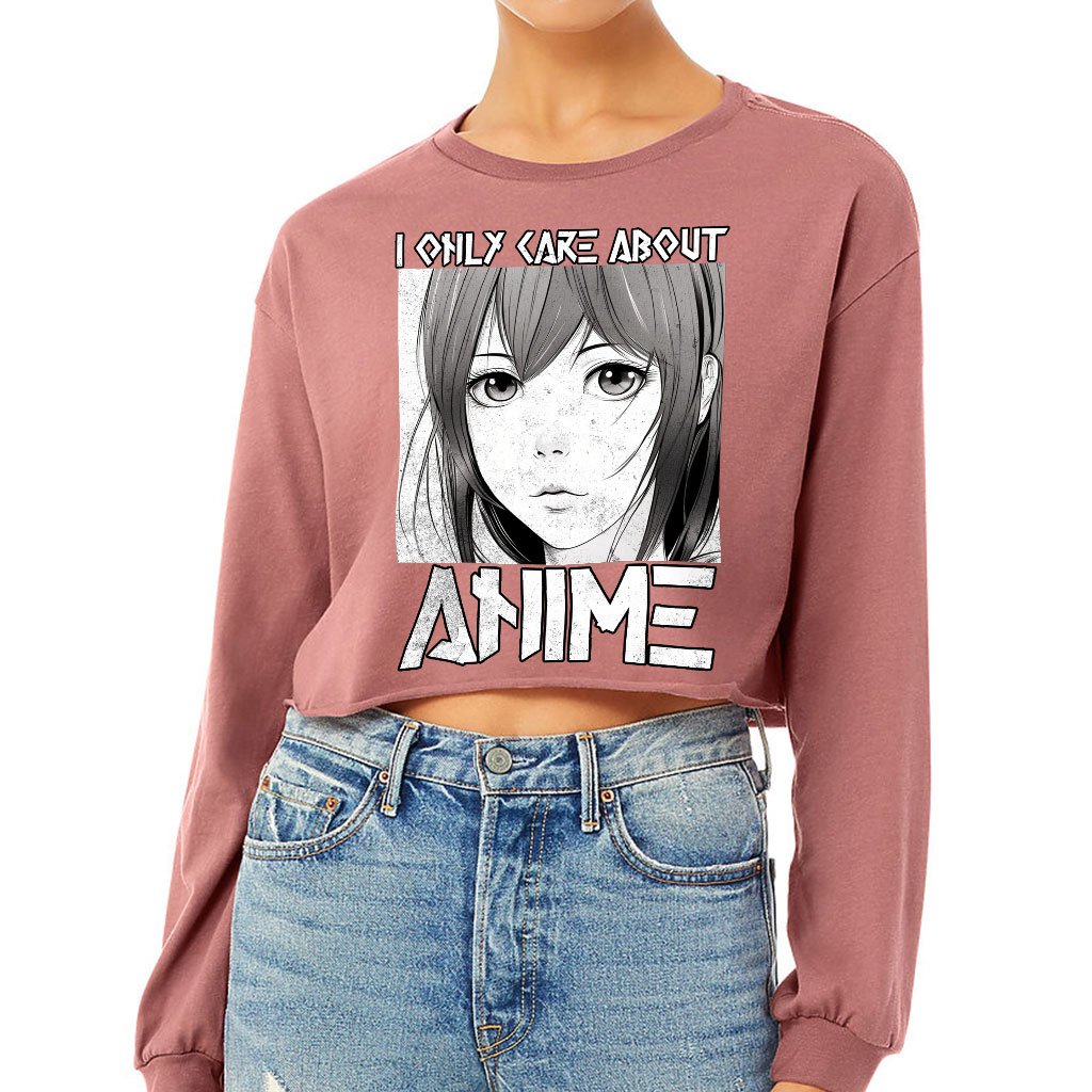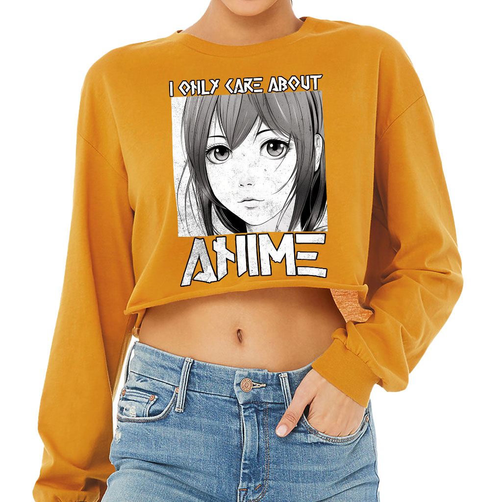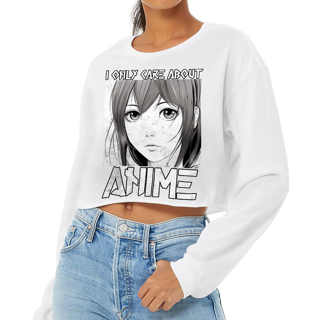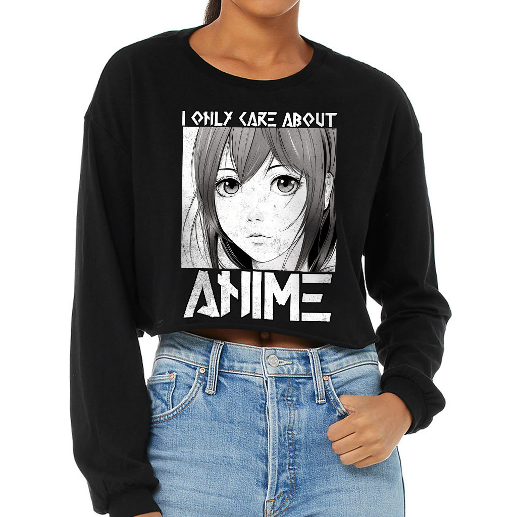 I Care About Anime Cropped Long Sleeve T-Shirt – Unique Gifts – Anime Lover Gifts for Women
