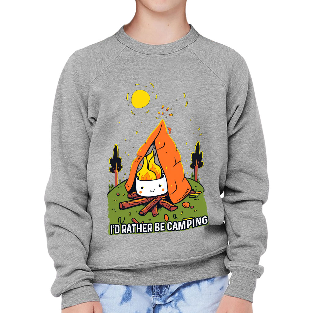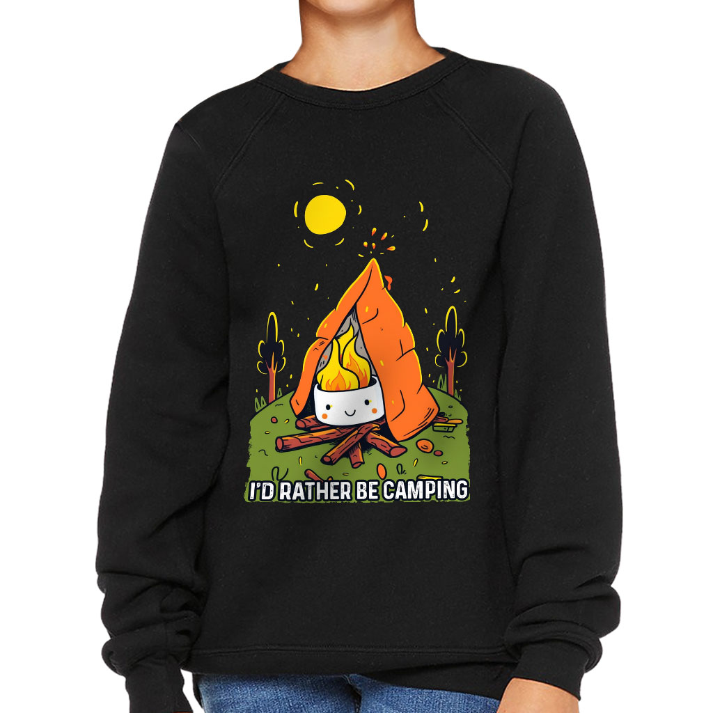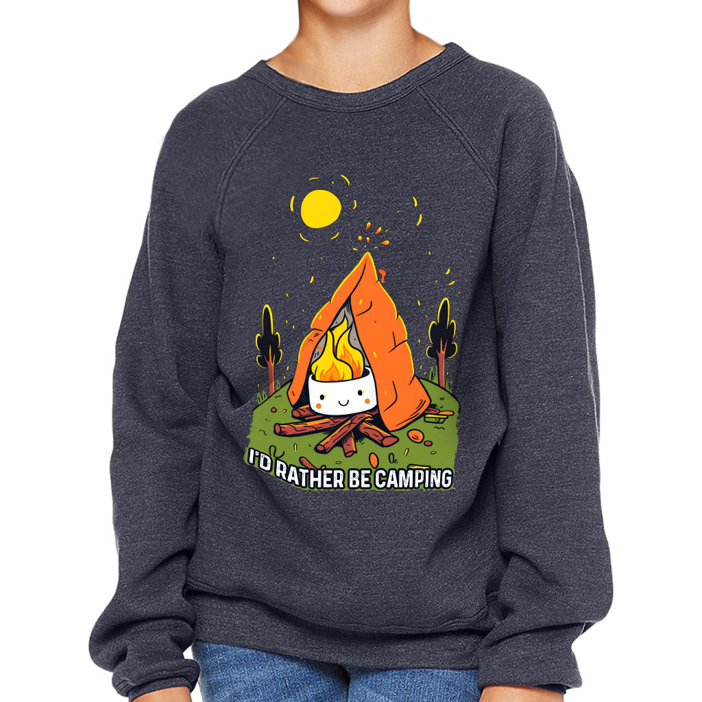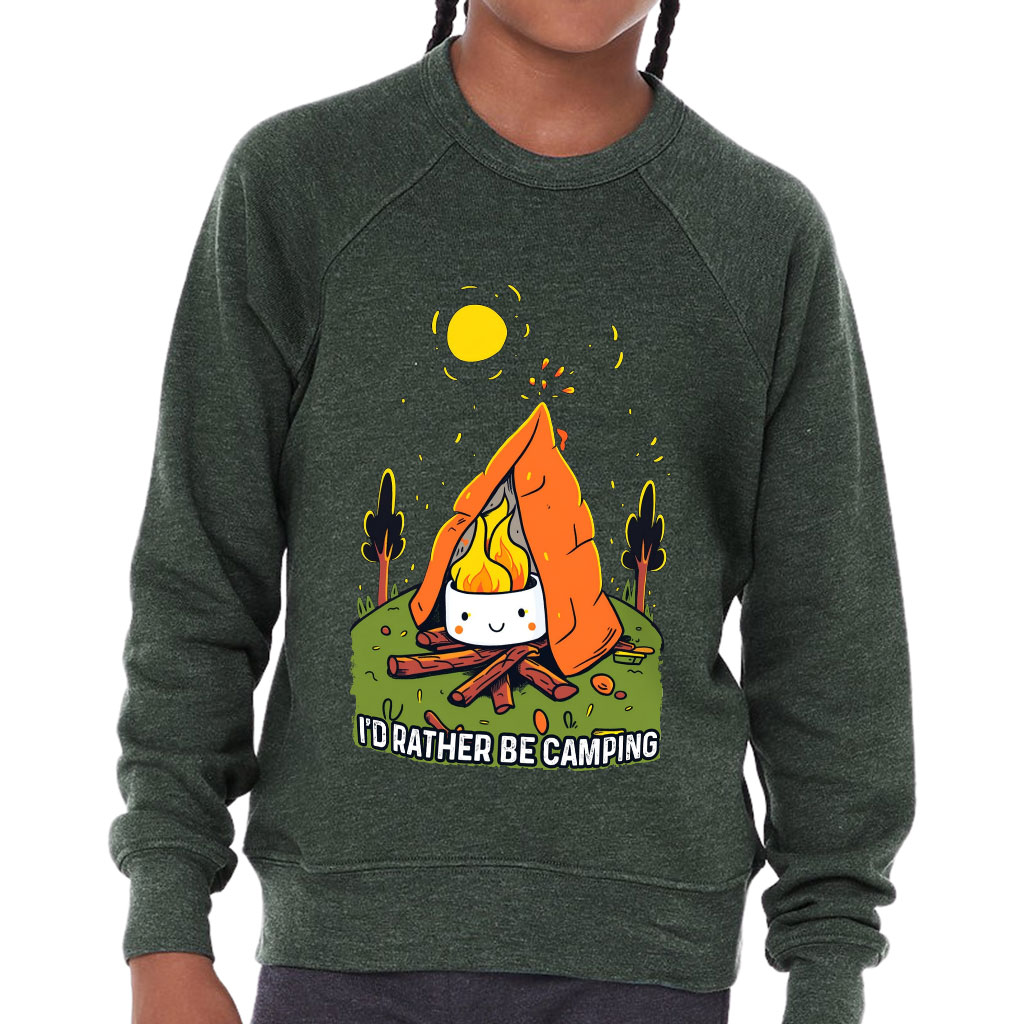 I’d Rather Be Camping Kids’ Raglan Sweatshirt – Cute Kawaii Sponge Fleece Sweatshirt – Adorable Sweatshirt
