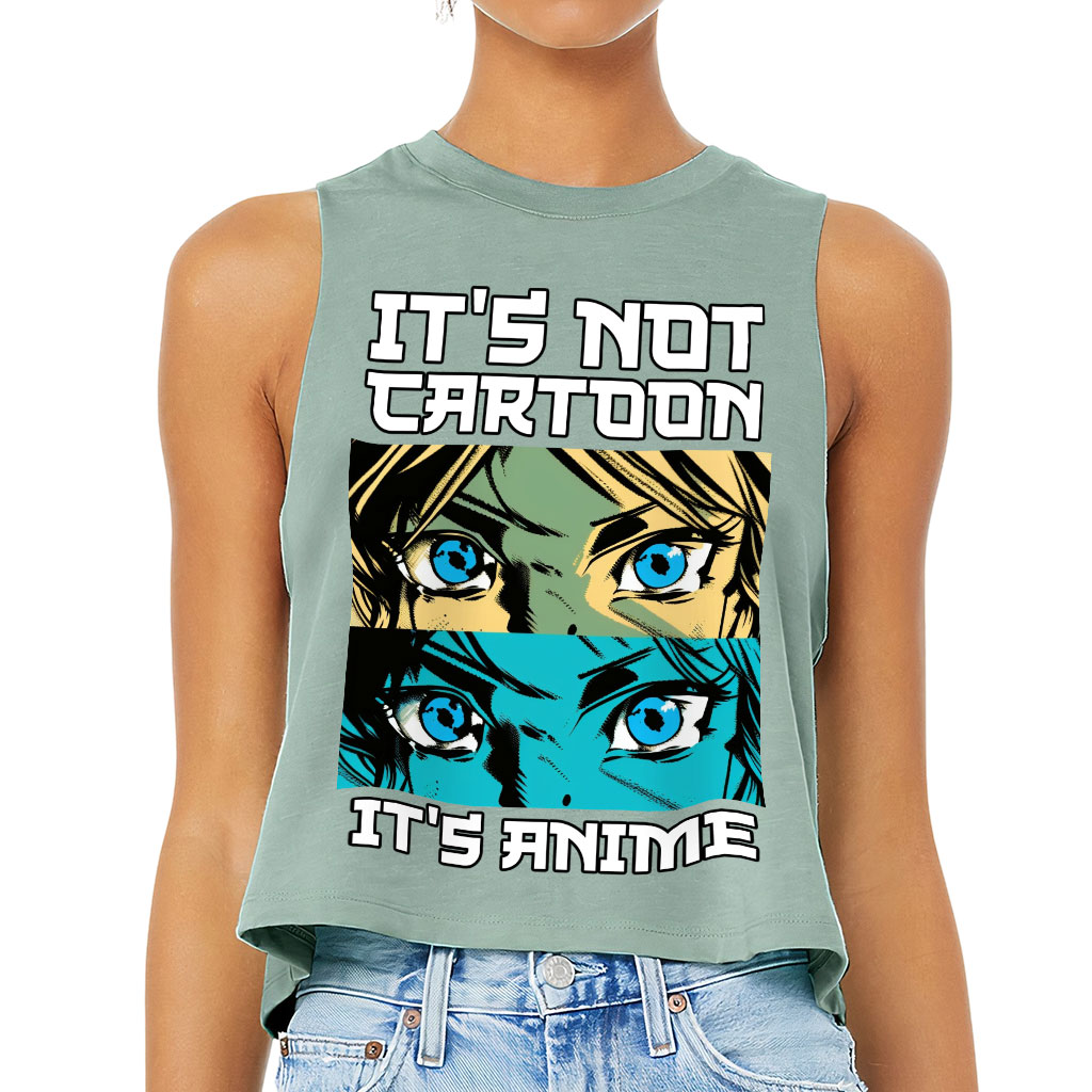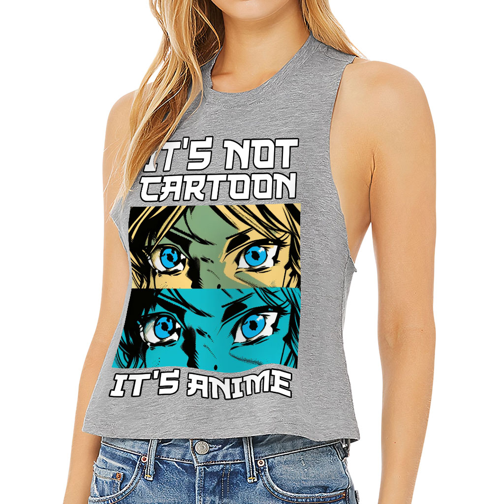 It’s Not Cartoon It’s Anime Racerback Cropped Tank Show off your style with Great Item! This cool and comfortable top is just what your wardrobe needs. Featuring a side-seamed relaxed fit that falls softly from the shoulders to a cropped finish, it’s perfect for flaunting your figure. Brass-colored raw edge arm…