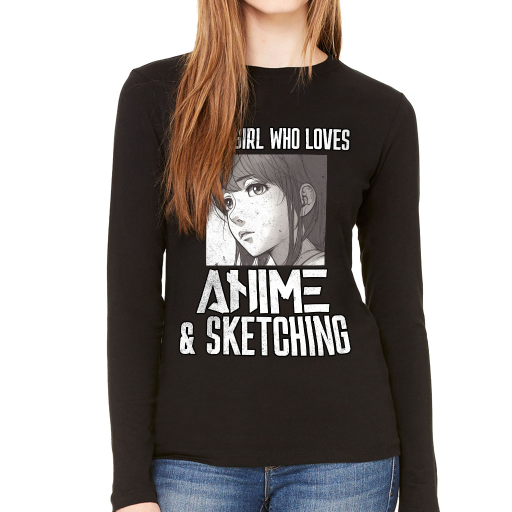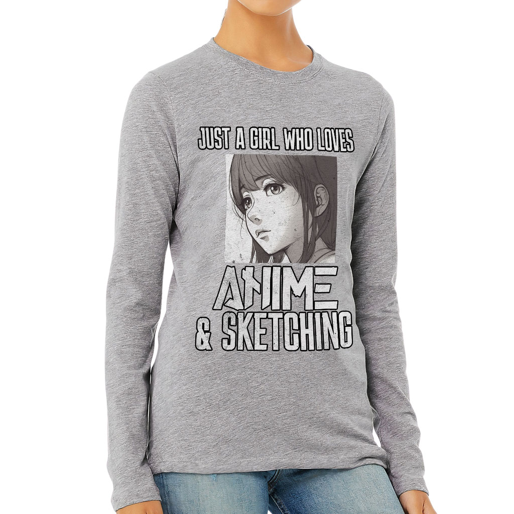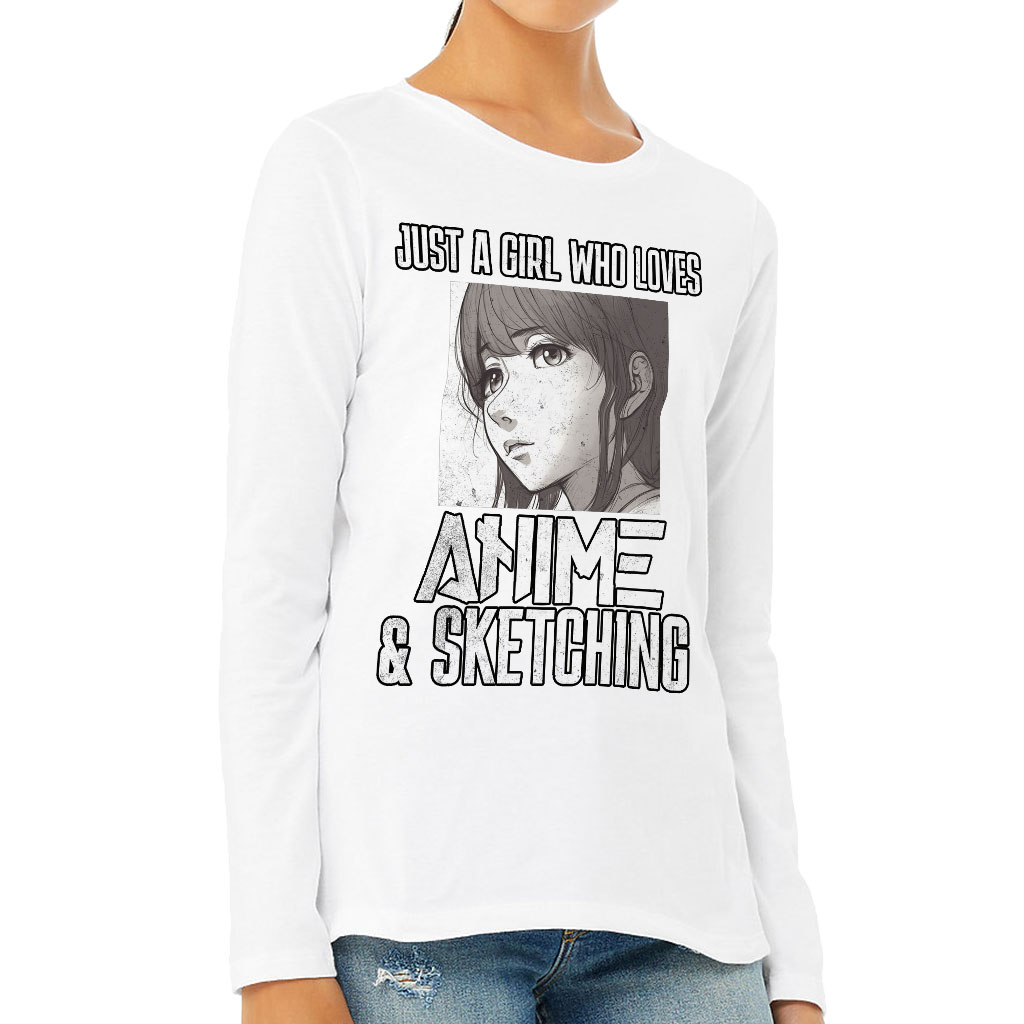 Just a Girl Who Loves Anime and Sketching Women’s Long Sleeve T-Shirt – Anime Lover Items for Girls – Gifts for a Girlfriend