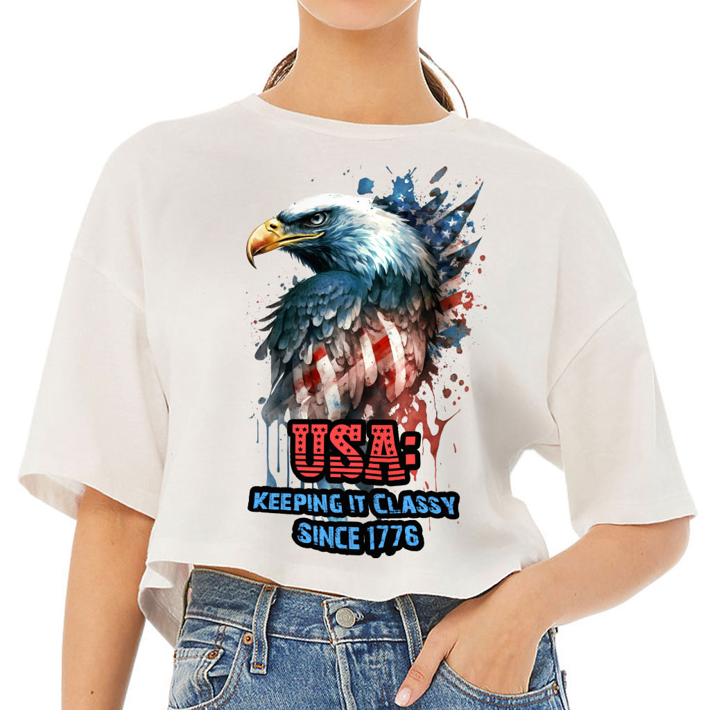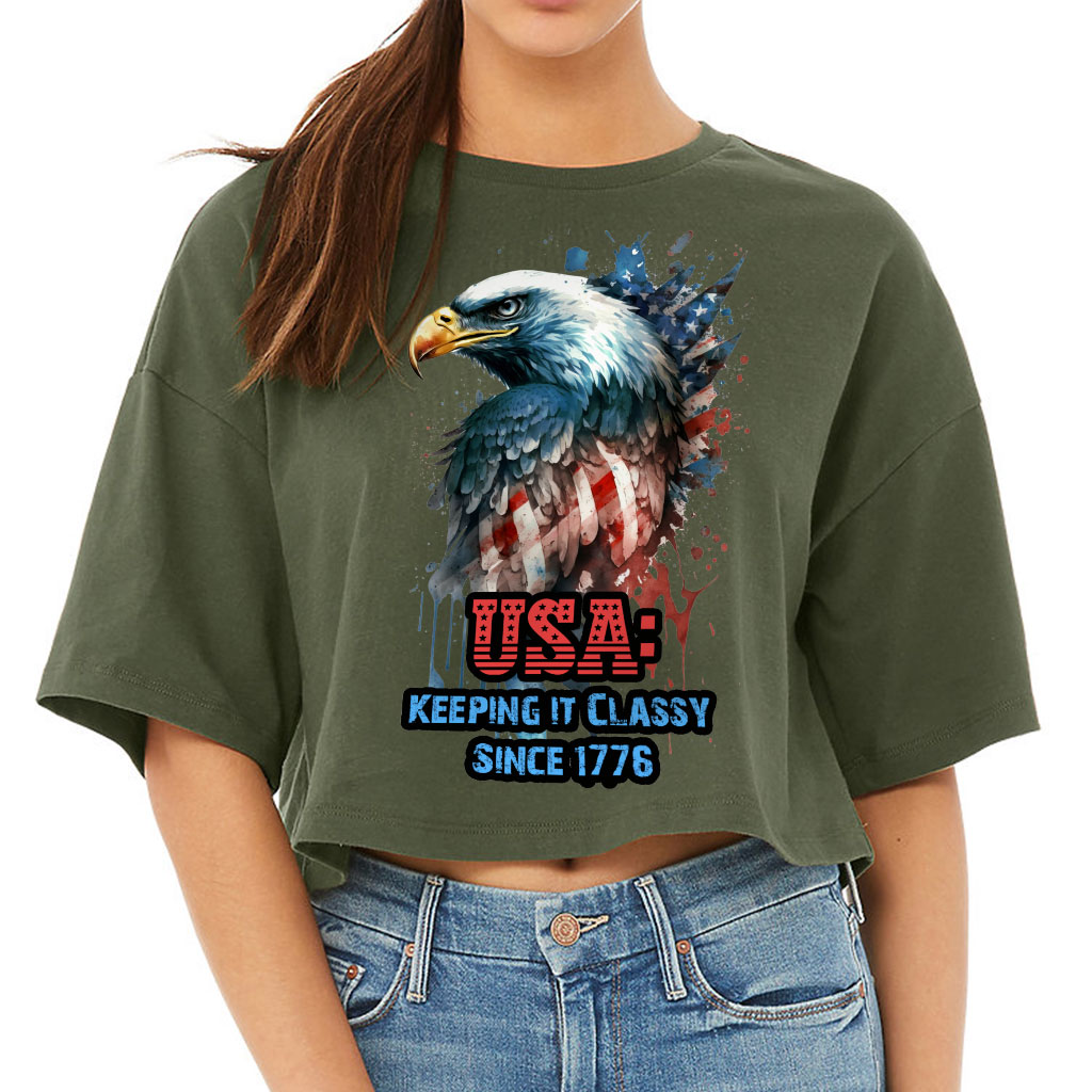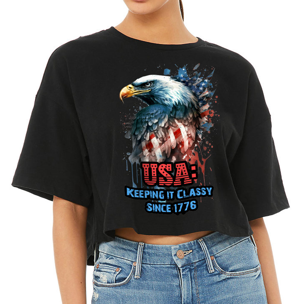 Keeping It Classy Women’s Crop Tee Shirt – Patriotic Gifts – Gift for Girls