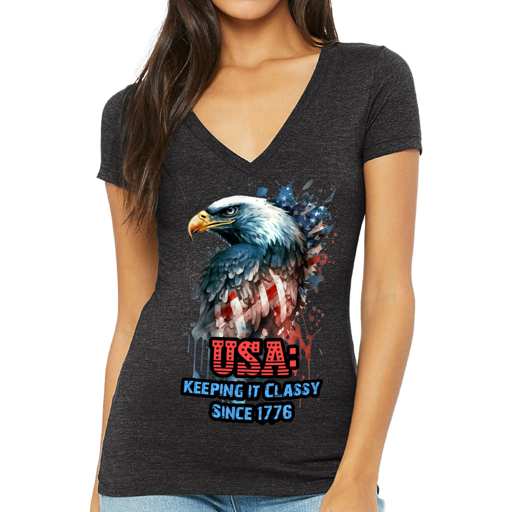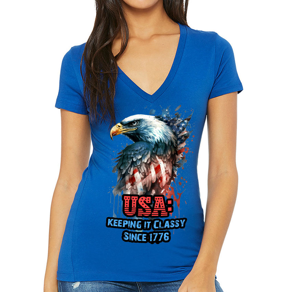 Keeping It Classy Women’s V-Neck T-Shirt – Gift for Girls – Patriotic Gifts